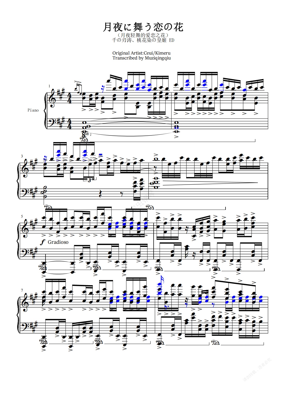 钢琴谱:《月夜に舞う恋の花》钢琴总谱