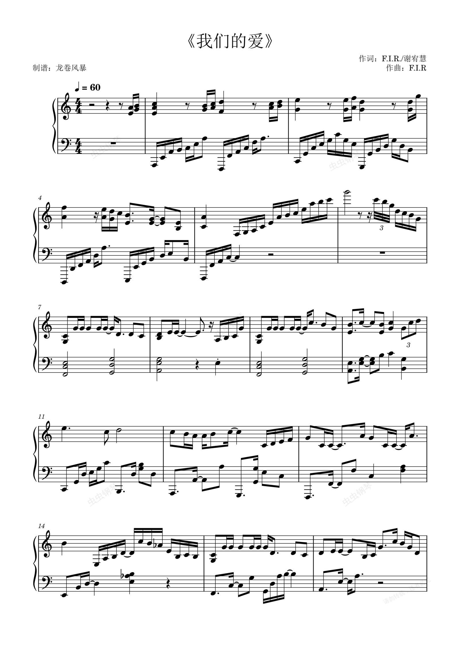 钢琴谱:《我们的爱》F.I.R.(飞儿乐团)(C调唯美演奏版)