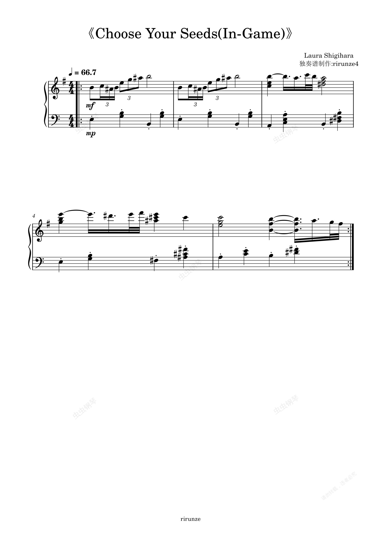 钢琴谱:植物大战僵尸-选卡[Choose Your Seeds]【独奏钢琴谱】