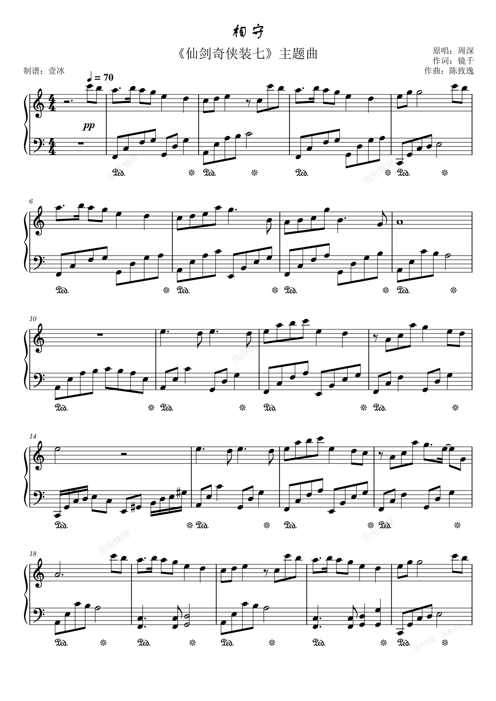 钢琴谱:相守//仙剑奇侠传七 主题曲-简单 易上手