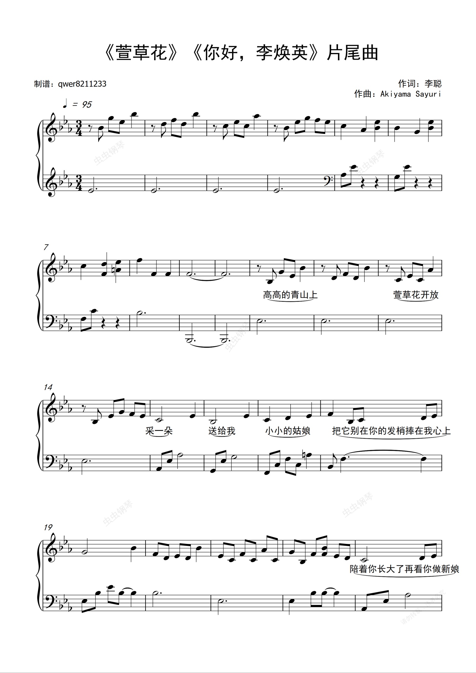 钢琴谱:《萱草花》《你好,李焕英》片尾曲