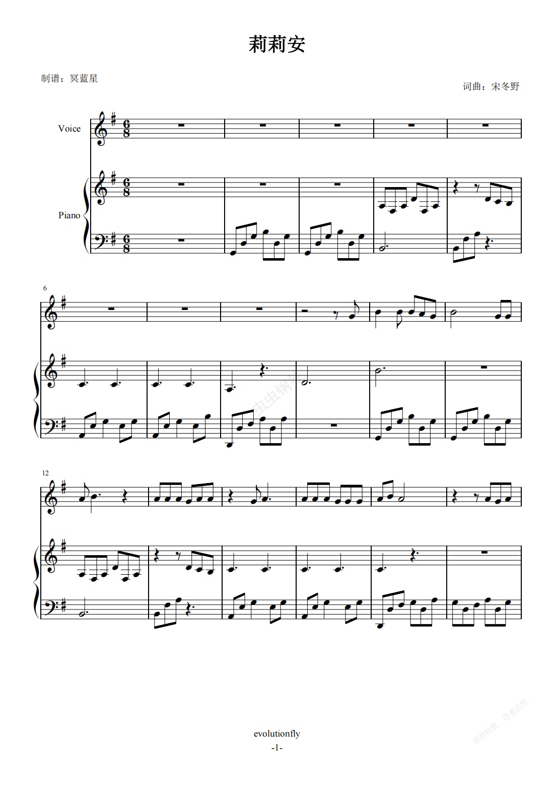 钢琴谱:莉莉安-宋冬野-伴奏谱