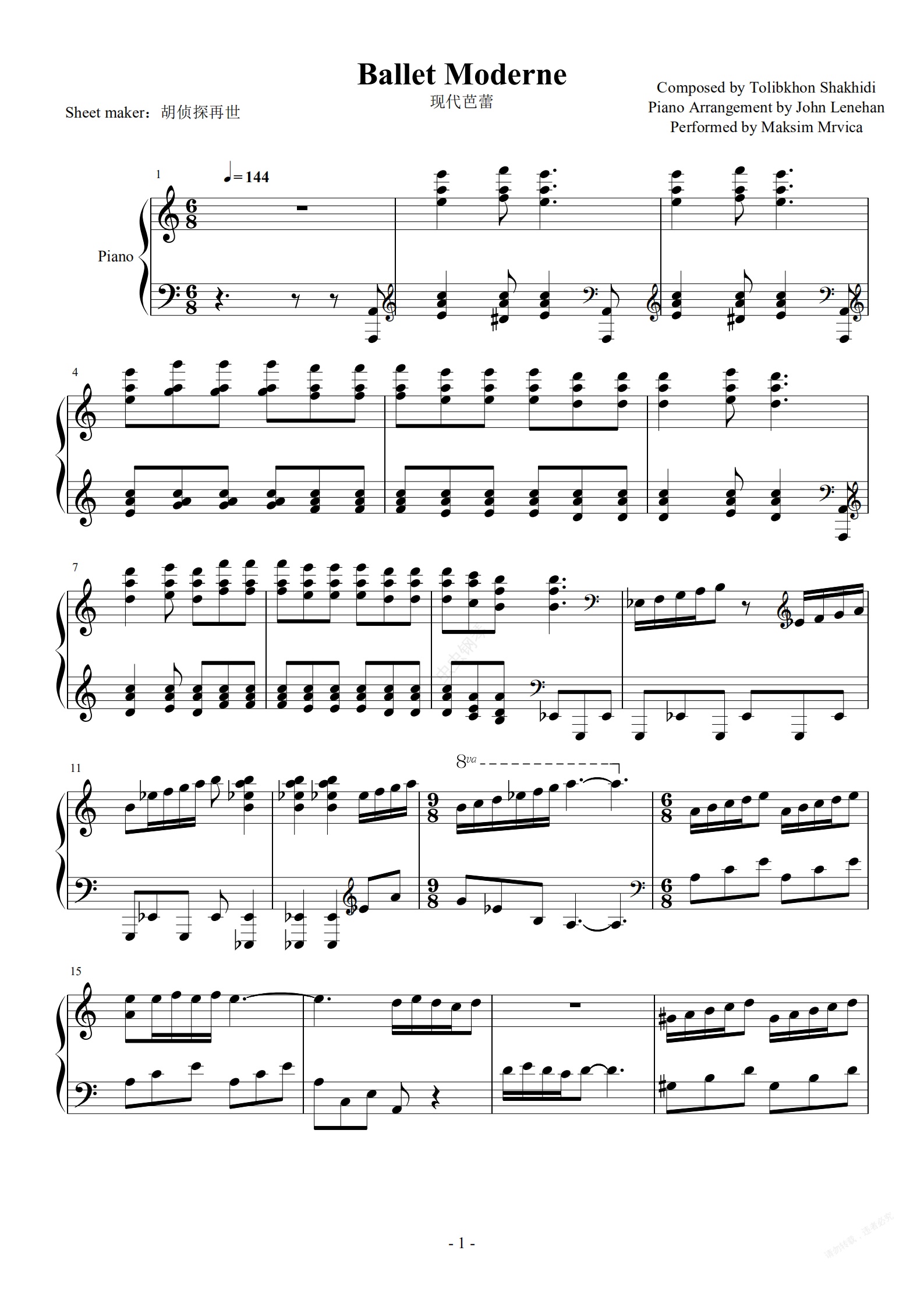 钢琴谱:【马克西姆】Ballet Moderne-现代芭蕾