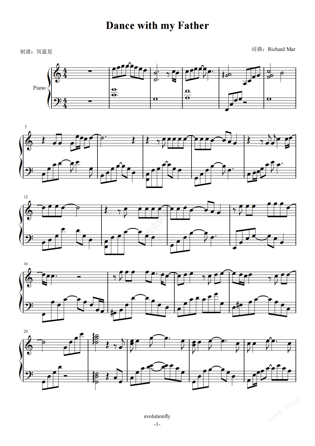 钢琴谱:Dance with my father-Celine Dion-演奏谱