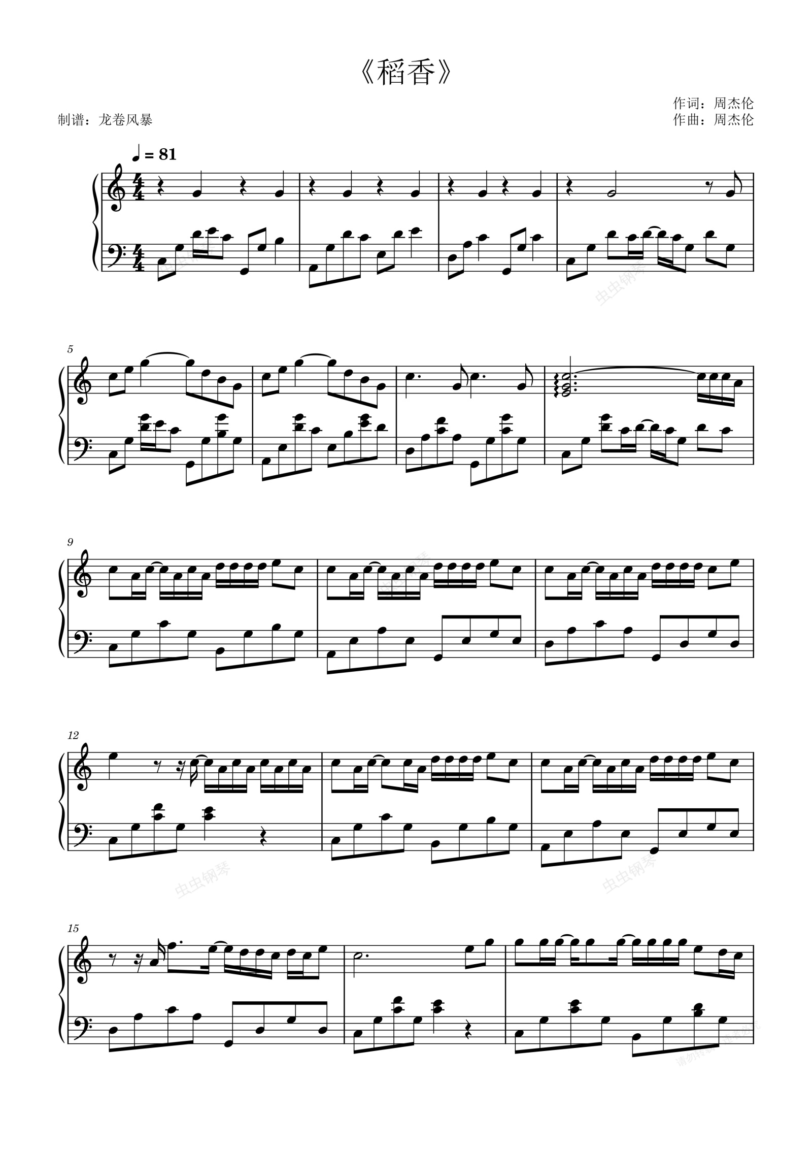 钢琴谱:《稻香》周杰伦(C调唯美版)