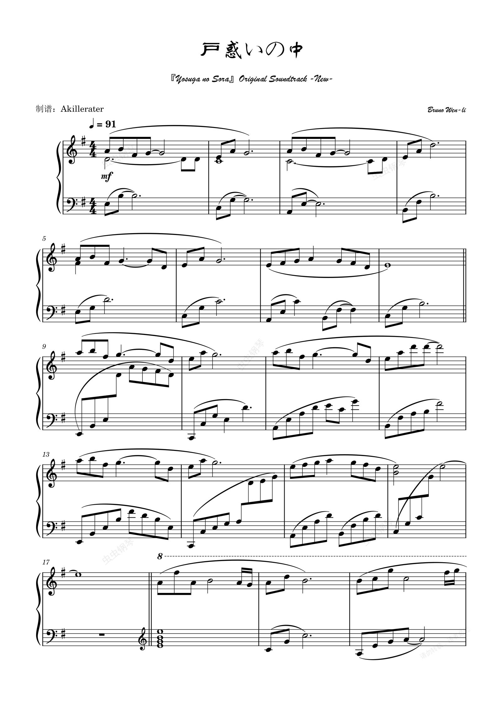钢琴谱:戸惑いの中(困惑之中《缘之空》)