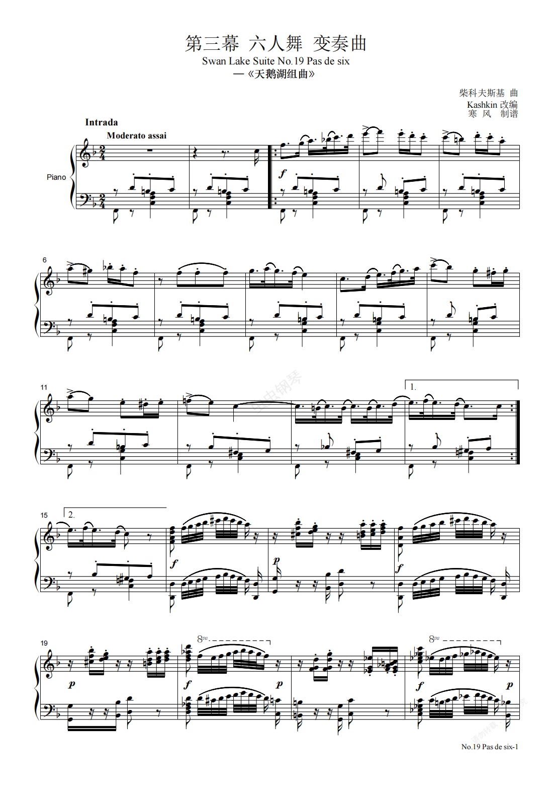 钢琴谱:天鹅湖组曲No.19-六人舞