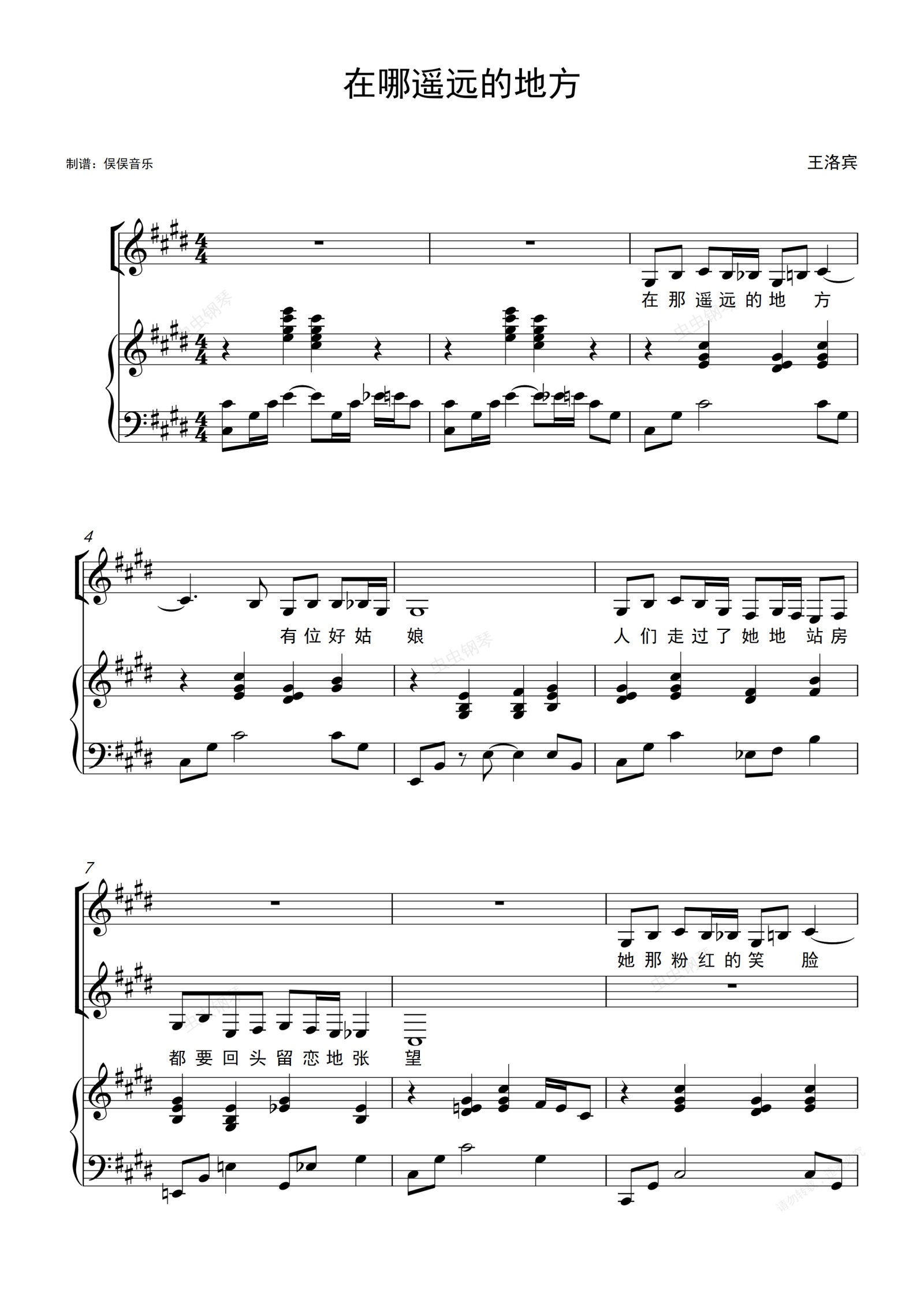 钢琴谱:在那遥远的地方(三声部合唱伴奏谱)