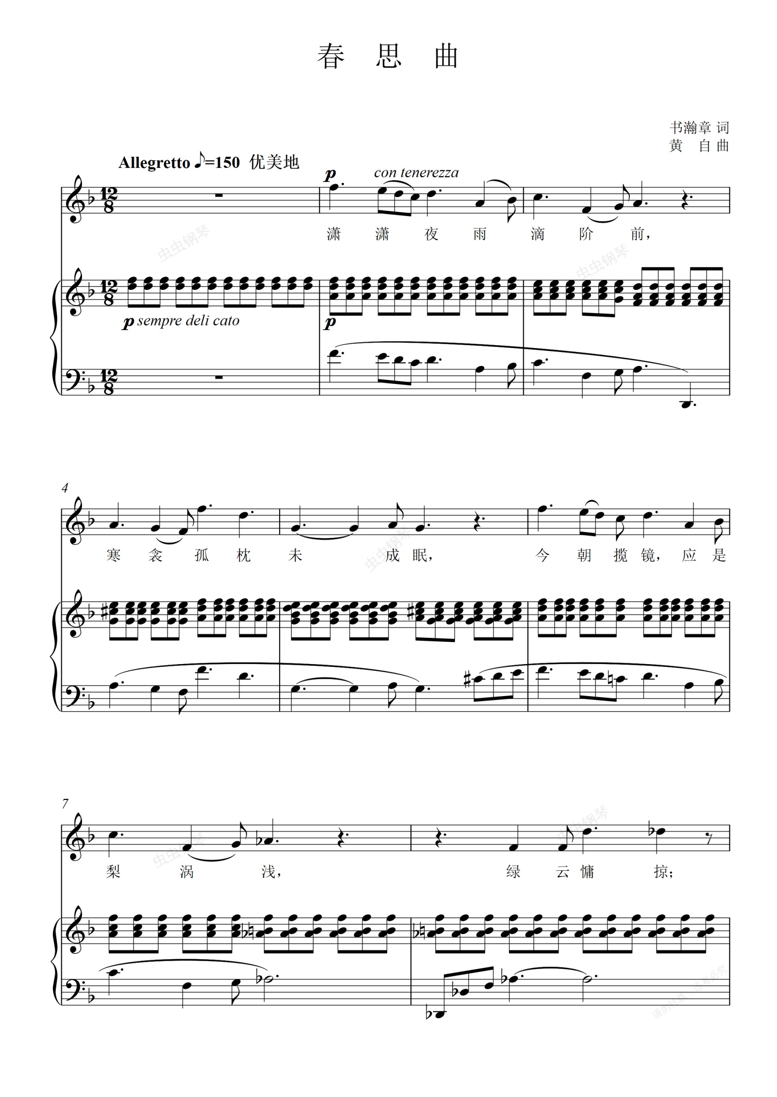 钢琴谱:春思曲—完整曲谱