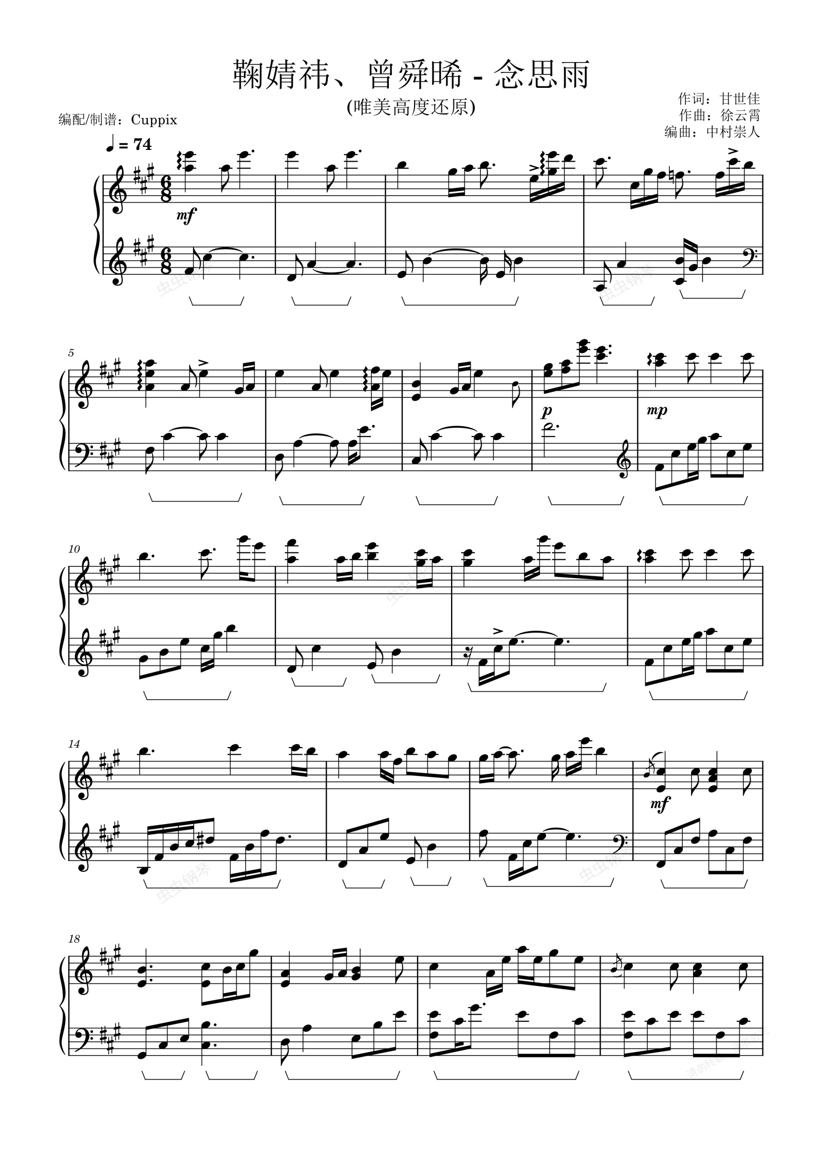钢琴谱:《念思雨》Cuppix编配-唯美高度还原(鞠婧祎、曾舜晞《嘉南传》网剧片尾曲)
