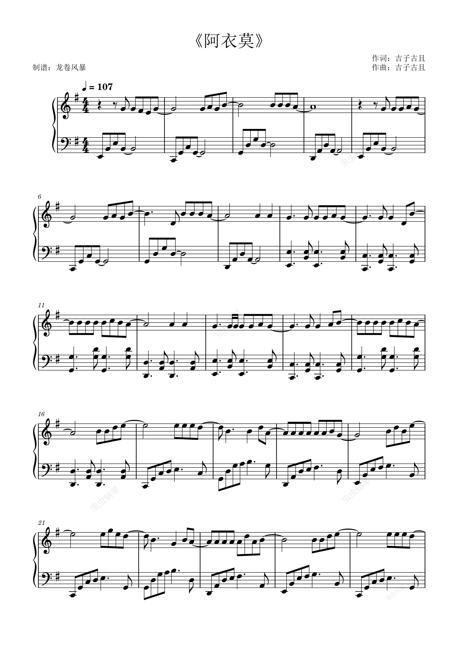 钢琴谱:《阿衣莫》阿吉太组合(简约完美版)(阿依莫)