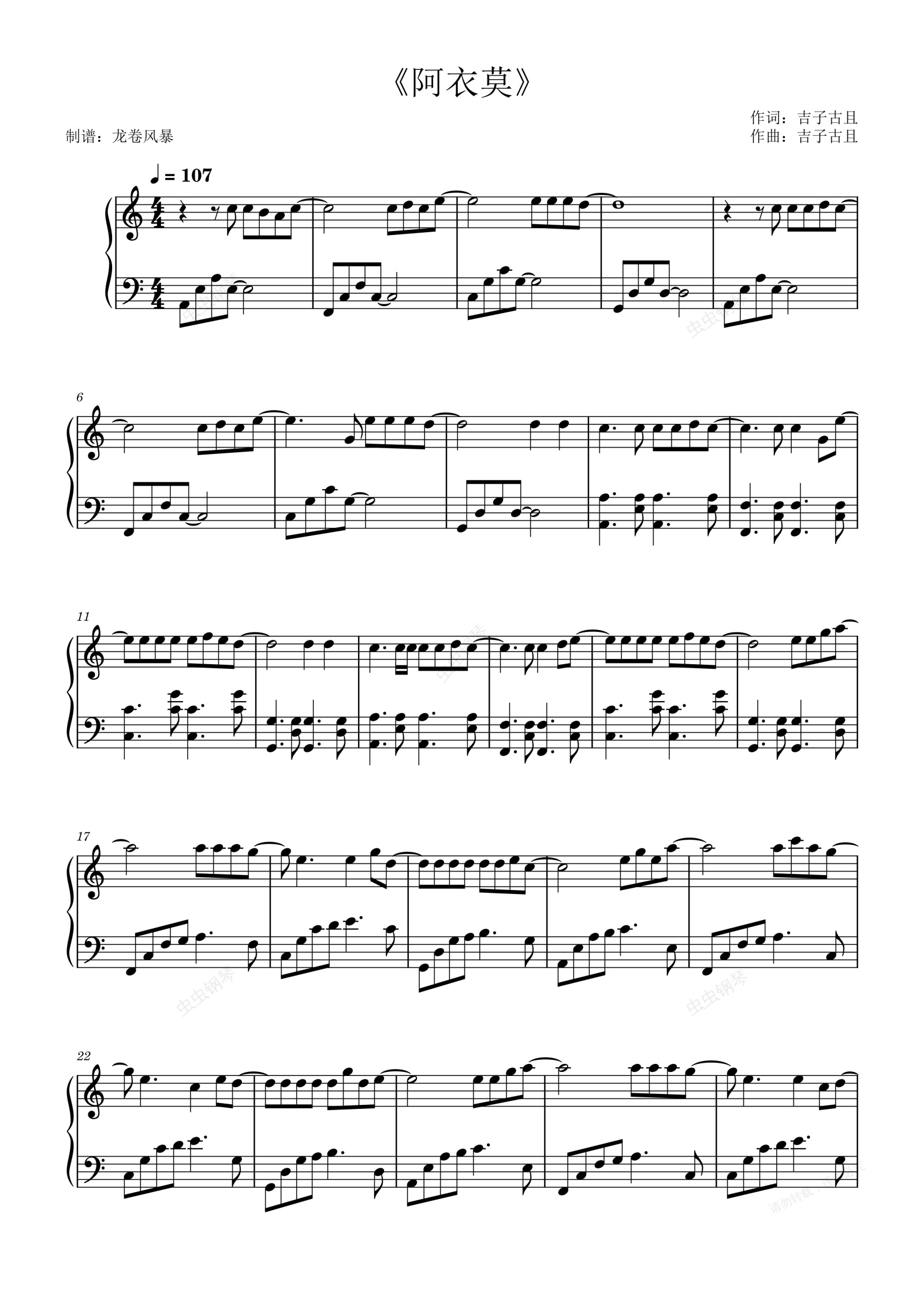 钢琴谱:《阿衣莫》阿吉太组合(C调简约版)(阿依莫)
