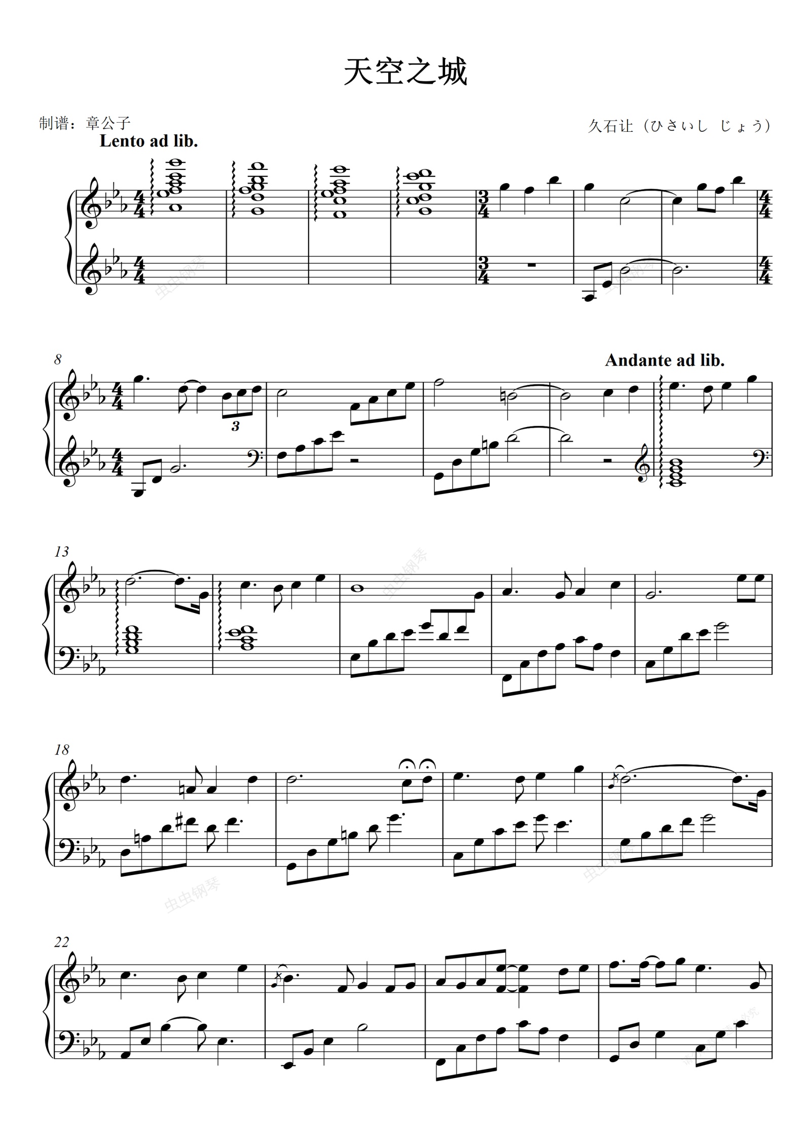 钢琴谱:《天空之城》独奏谱  扒谱自郭燕版