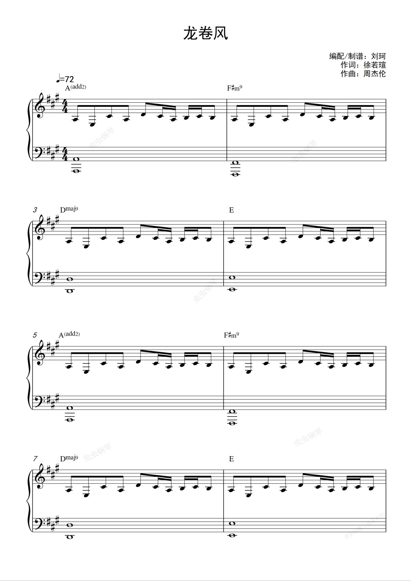 钢琴谱:龙卷风 - 周杰伦 钢琴伴奏版