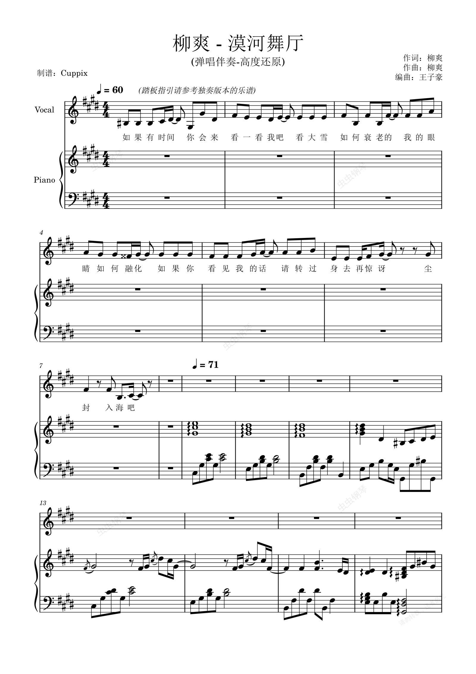 钢琴谱:《漠河舞厅》弹唱伴奏附词-高度还原(柳爽)