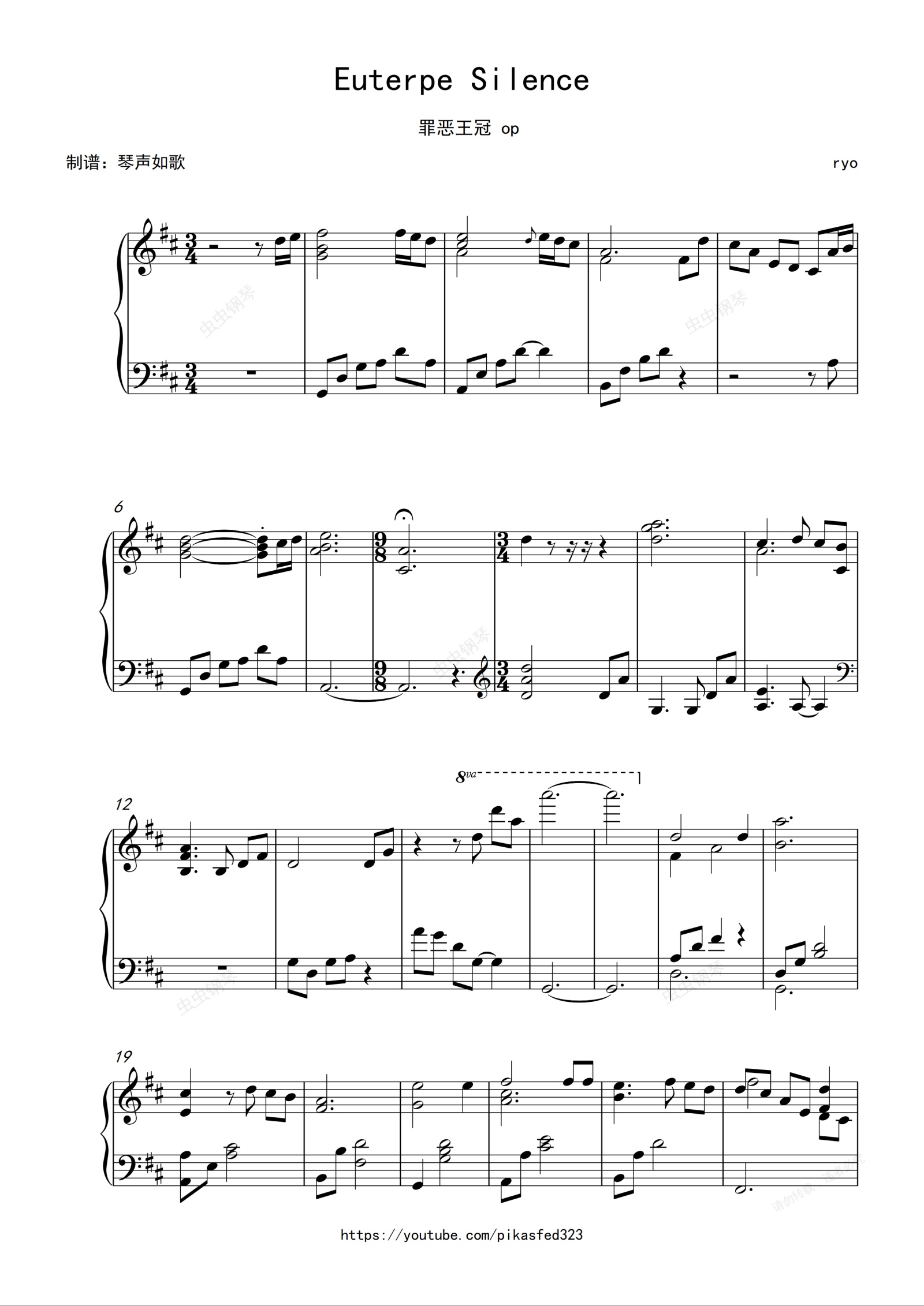 钢琴谱:罪恶王冠 op -Euterpe Silence 【完美还原钢琴独奏】
