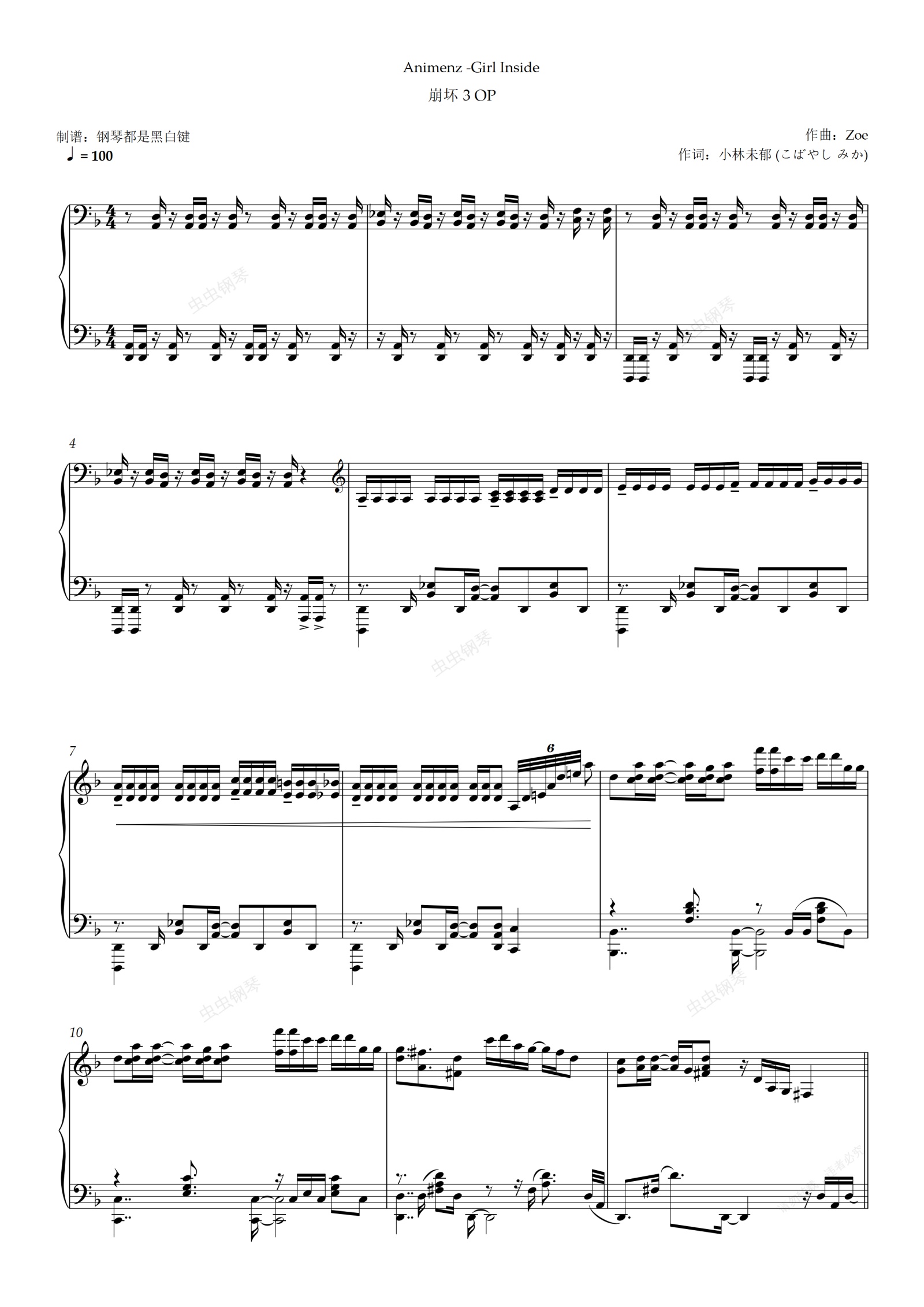[Animenz 扒谱]-Girl Inside 【极限还原钢琴独奏】