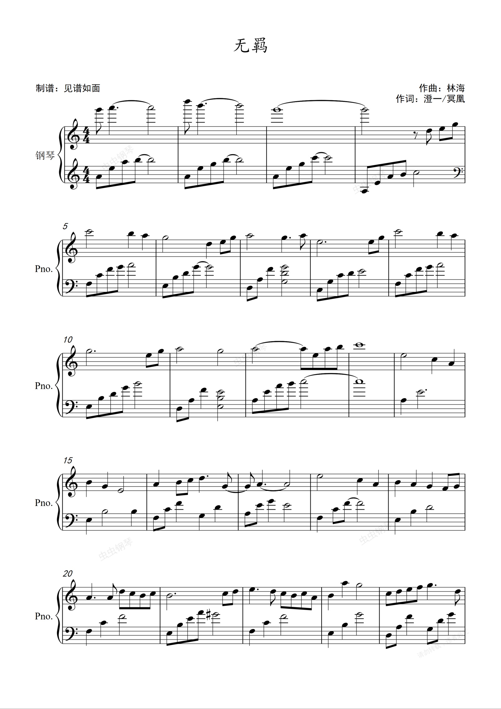 钢琴谱:无羁 - 肖战王一博【C调初级】
