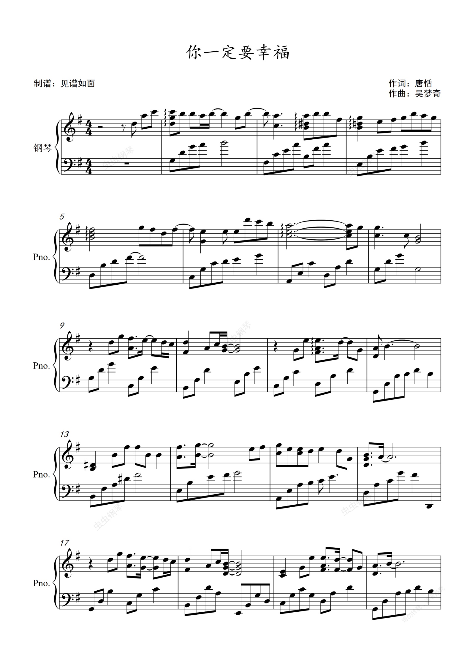钢琴谱:你一定要幸福 - 何洁【原调进阶】