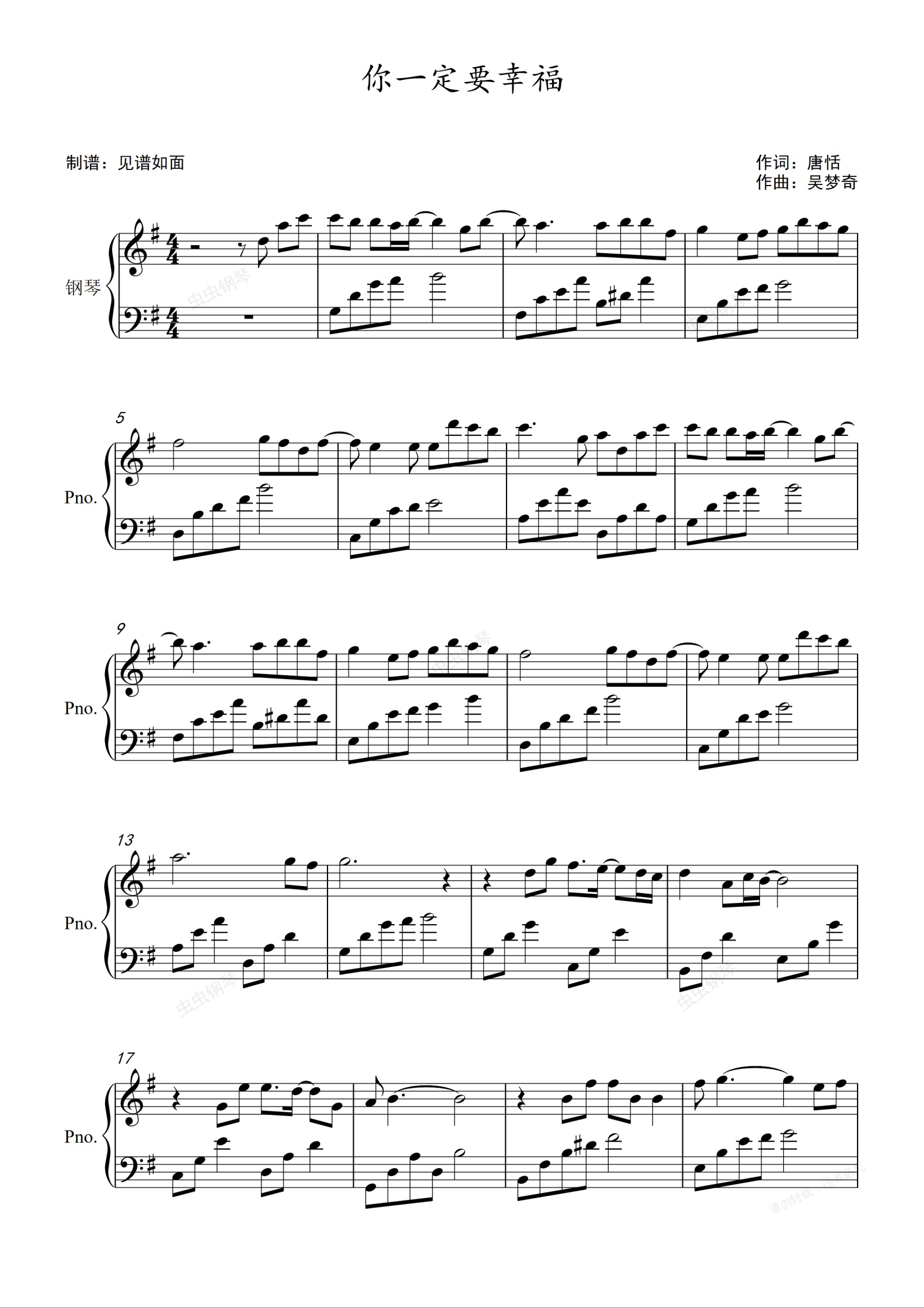 钢琴谱:你一定要幸福 - 何洁【原调初级】