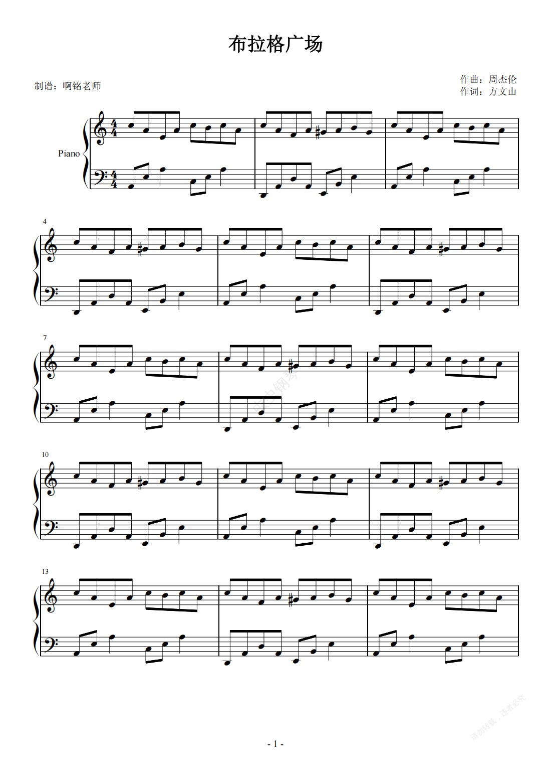 钢琴谱:布拉格广场 【简易 动听】