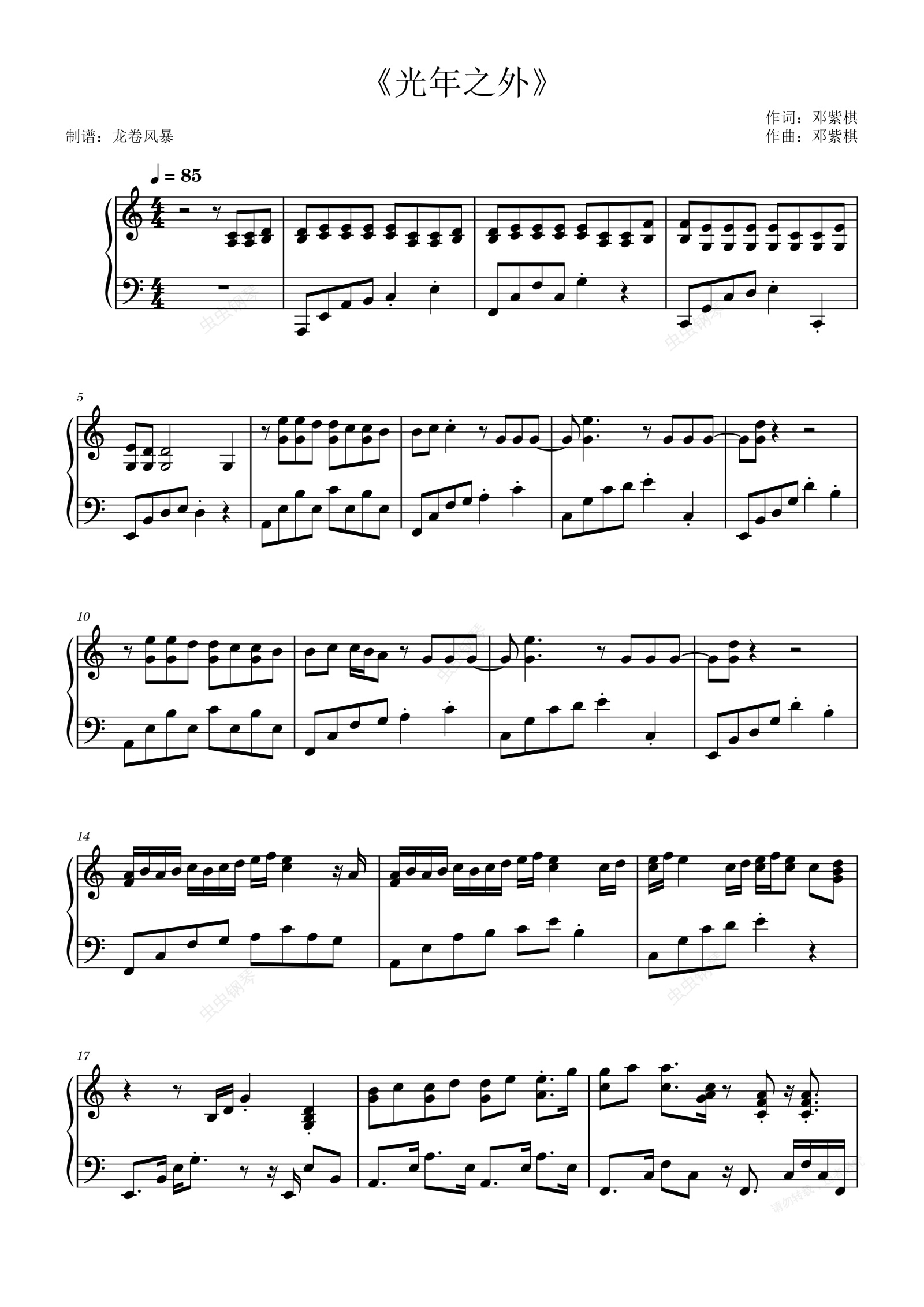 钢琴谱:《光年之外》邓紫棋(C调完美版)