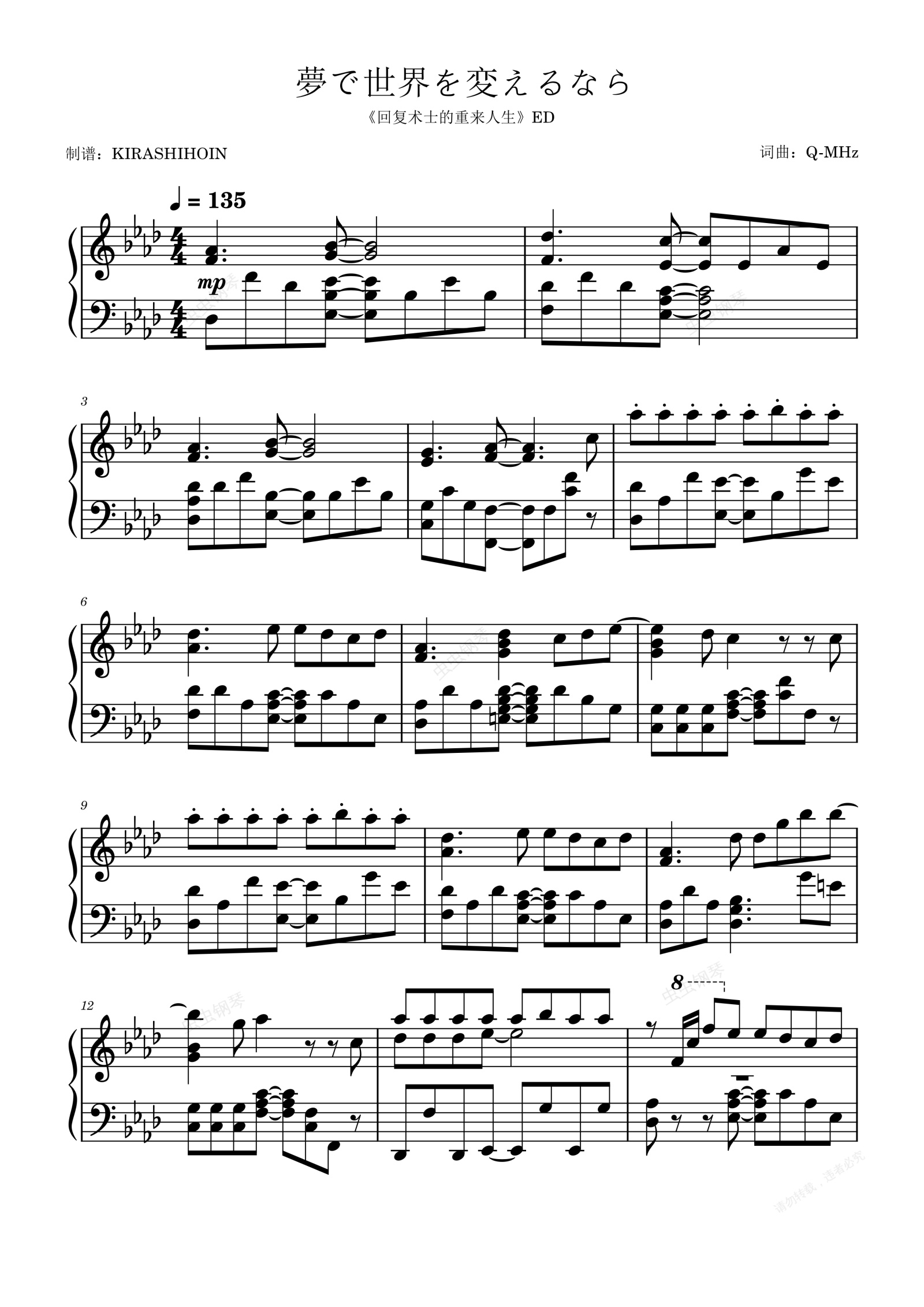 钢琴谱:夢で世界を変えるなら(《回复术士的重来人生》ED/片尾曲)- ARCANA PROJECT