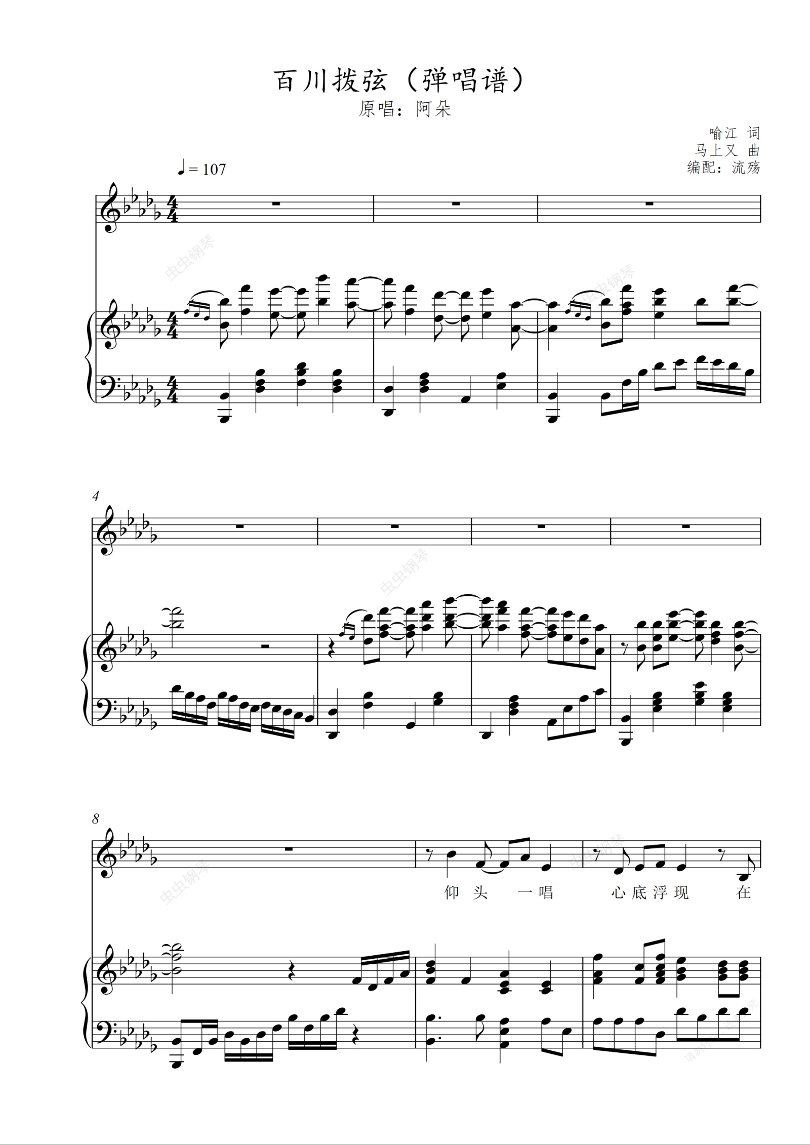 钢琴谱:百川拨弦(原调弹唱)