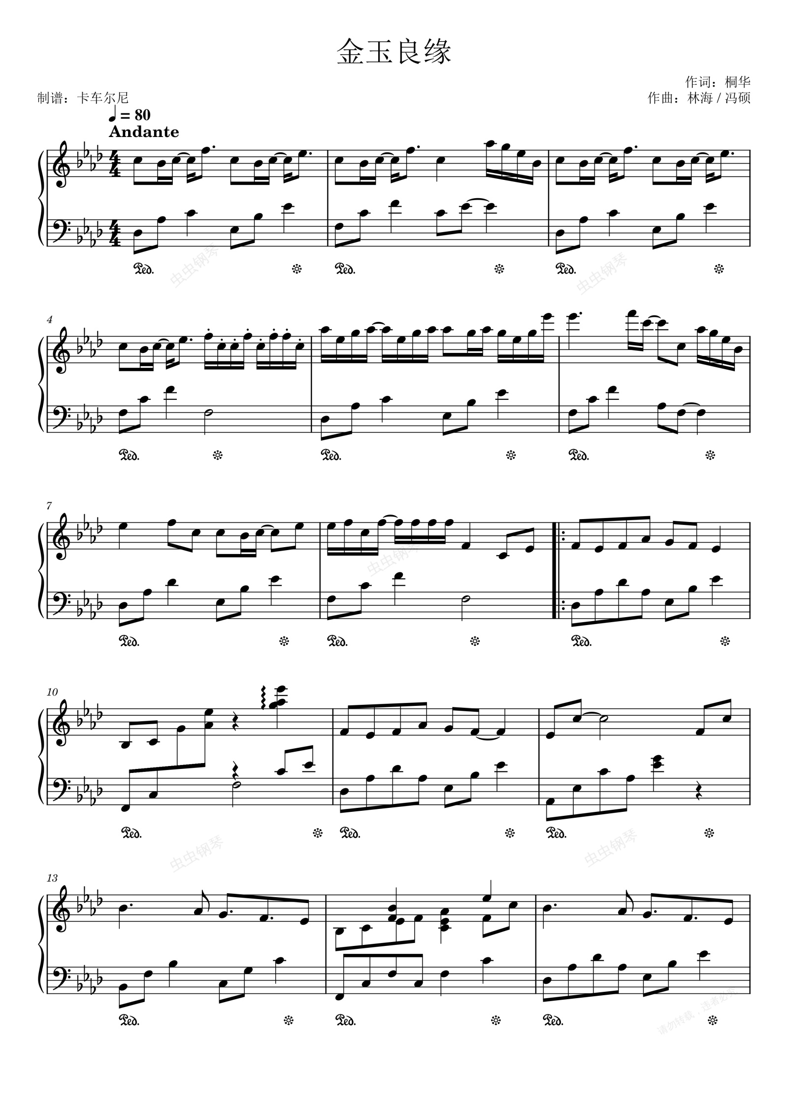 钢琴谱:金玉良缘 电视剧《金玉良缘》片尾曲