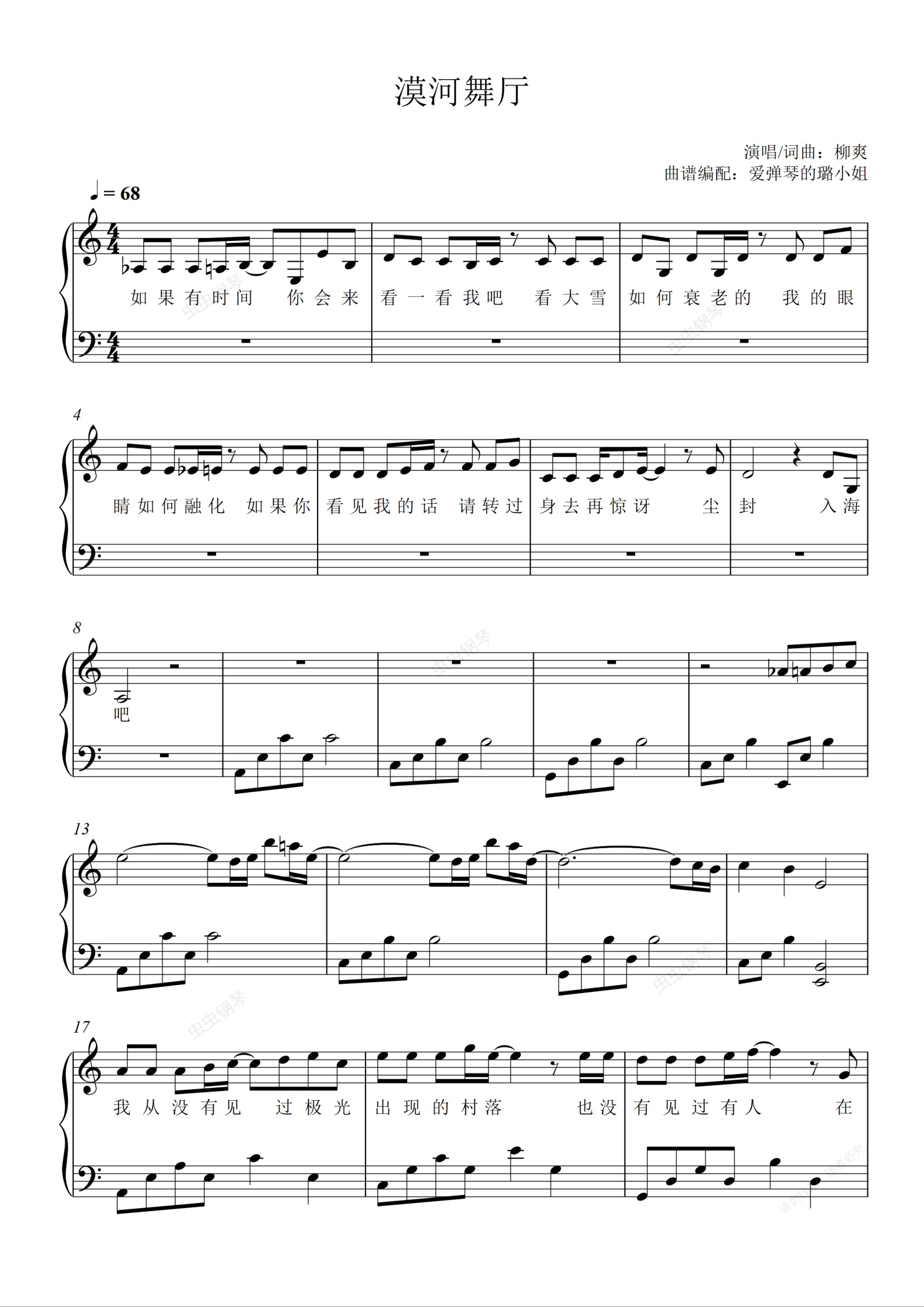 钢琴谱:漠河舞厅 - 抖音热歌 - 无删减带前奏间奏歌词 - C调简单版