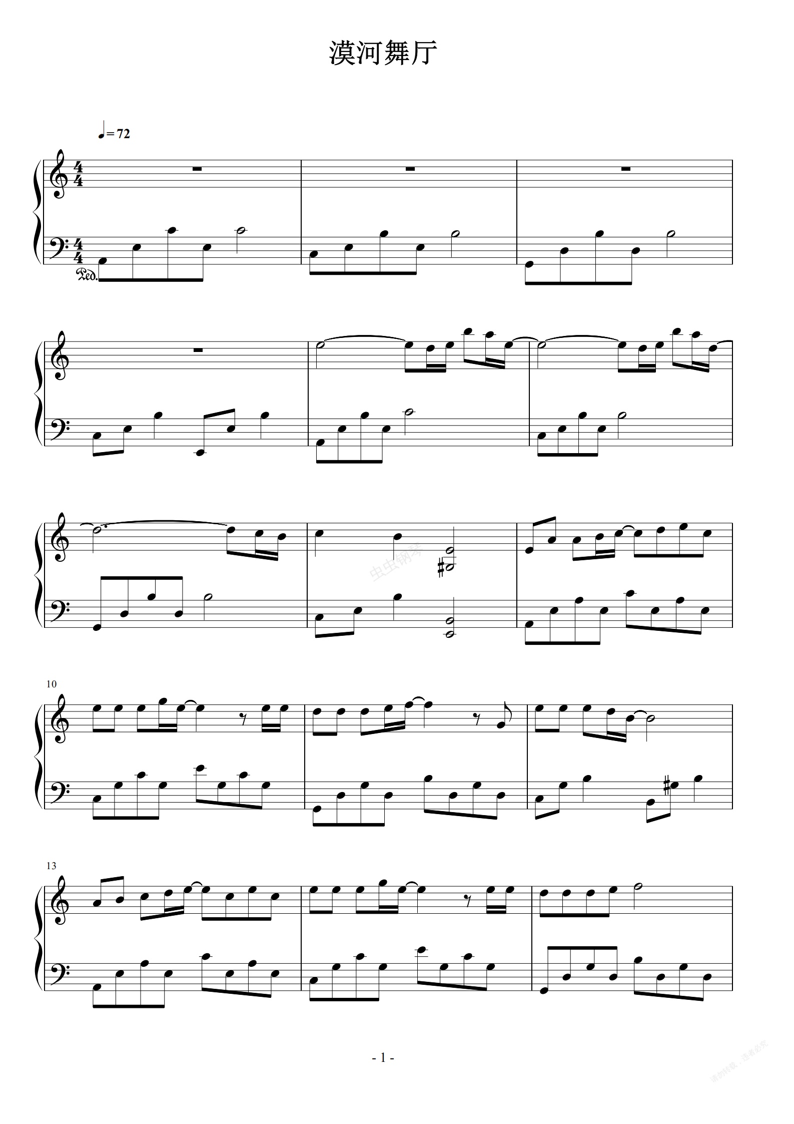 钢琴谱:漠河舞厅 C调简易版 柳爽