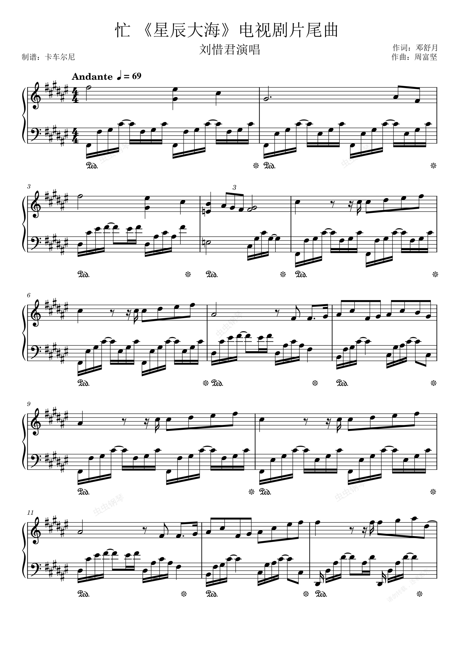 钢琴谱:忙  《星辰大海》电视剧片尾曲 还原版