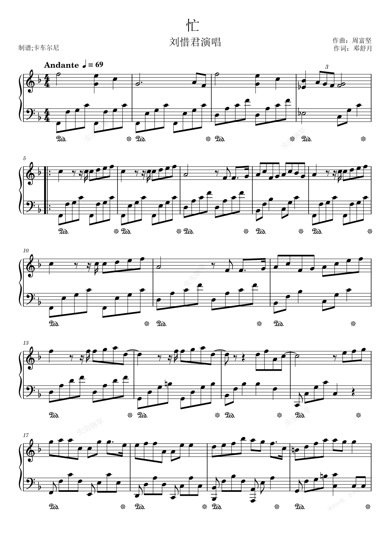钢琴谱:《忙》电视剧《星辰大海》片尾曲F调少升降号