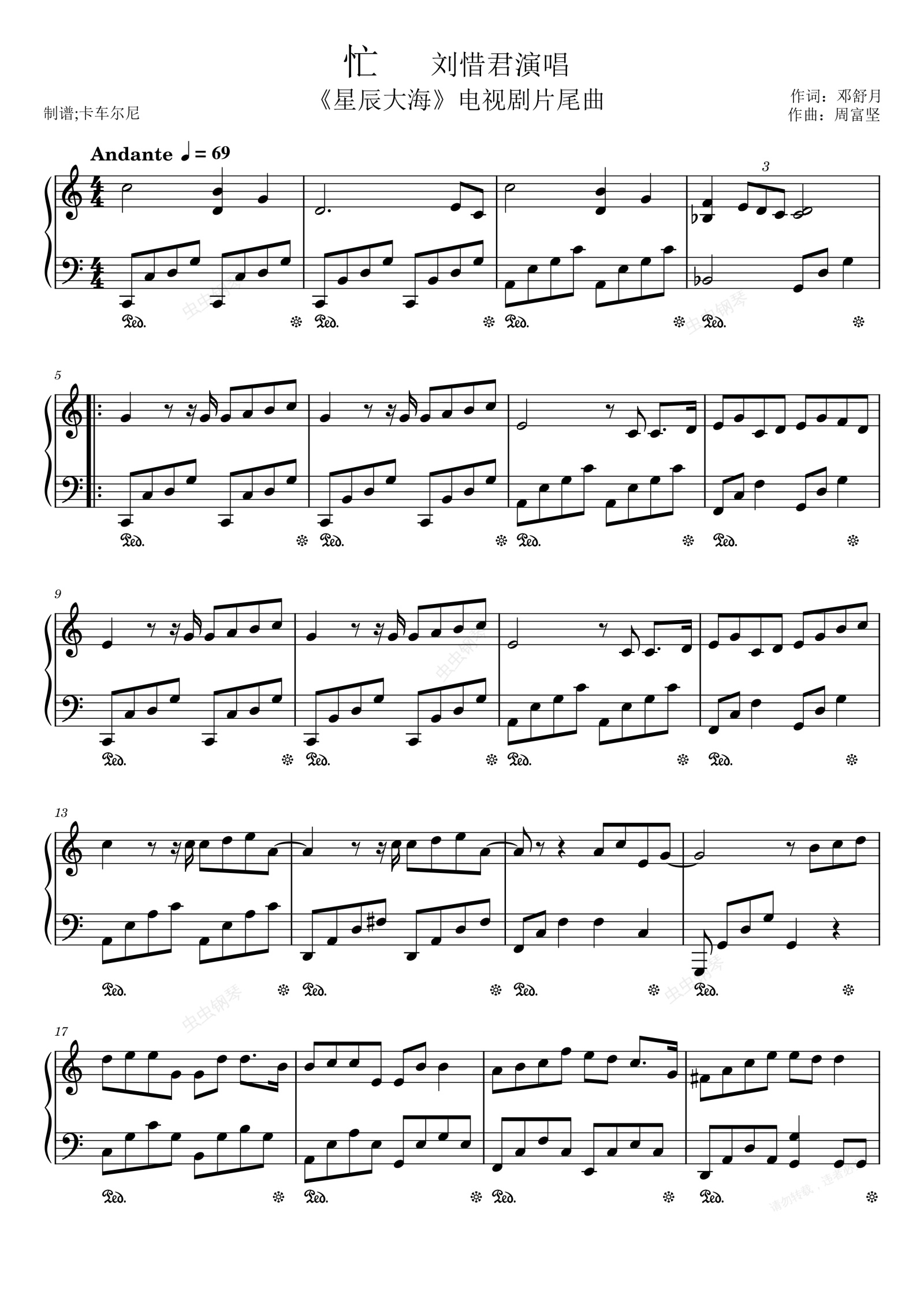 钢琴谱:《忙》《星辰大海》电视剧片尾曲 C调简单版