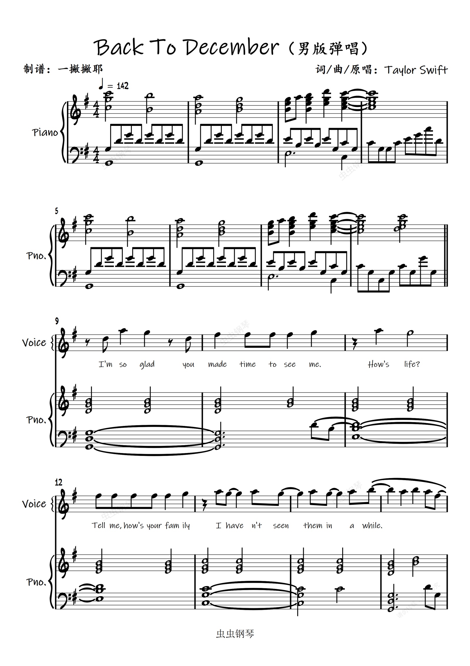 钢琴谱:【男版弹唱】Back to December-Taylor Swift「一撇撇耶」
