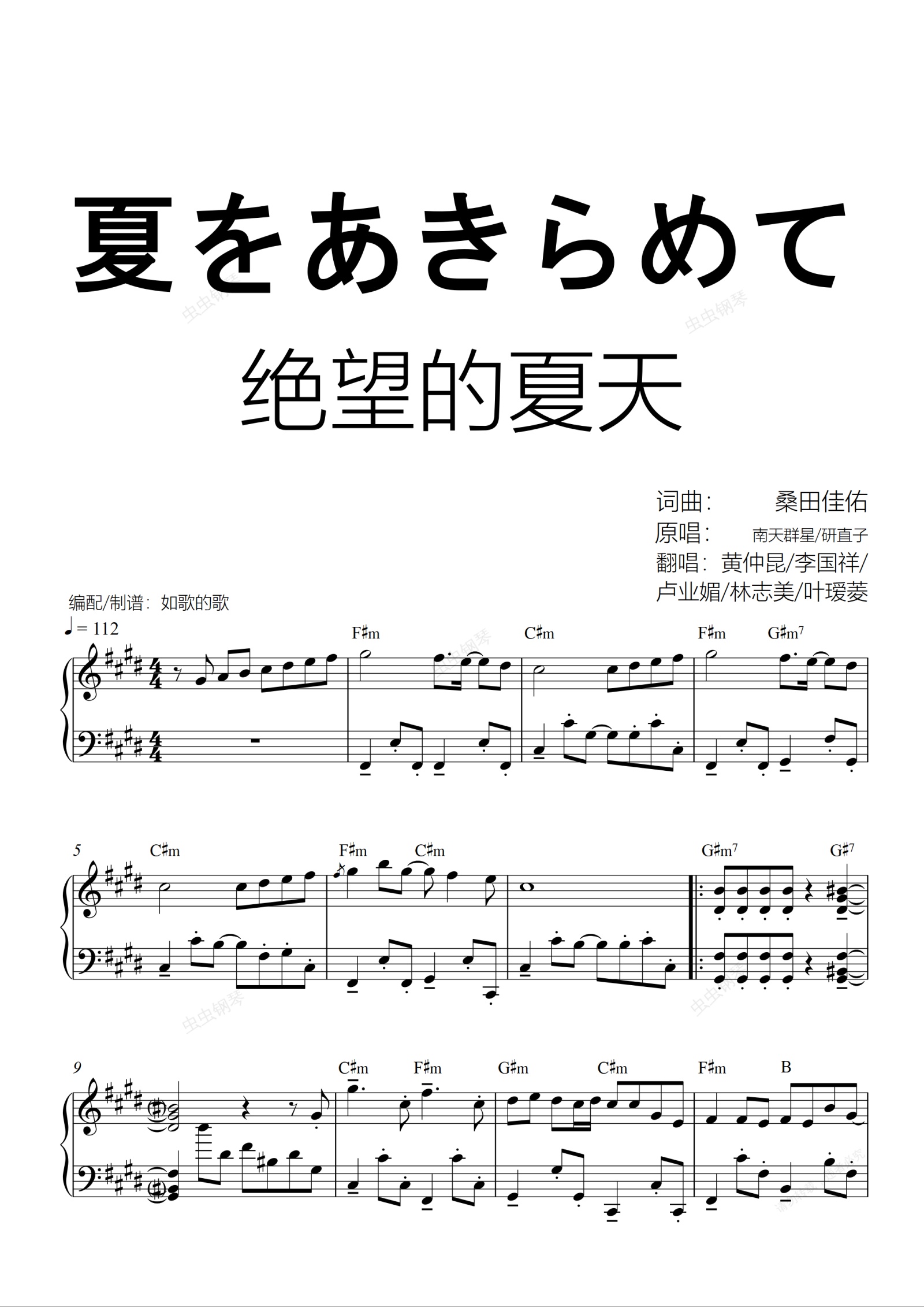 钢琴谱:夏をあきらめて研直子原调-桑田佳佑(绝望的夏天)