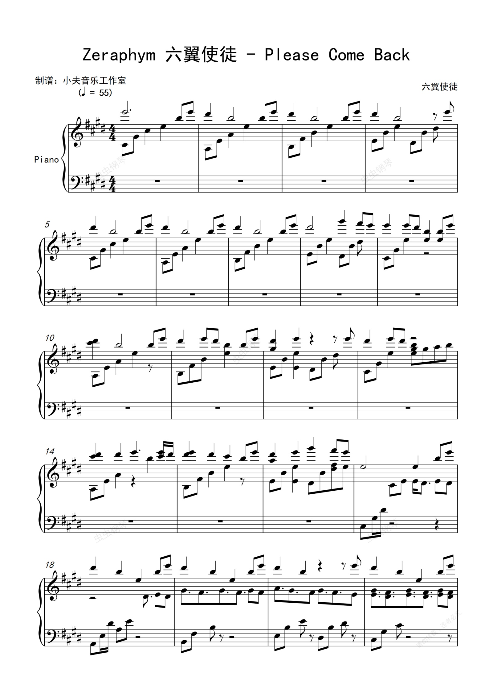 钢琴谱:Please Come Back-Zeraphym 六翼使徒