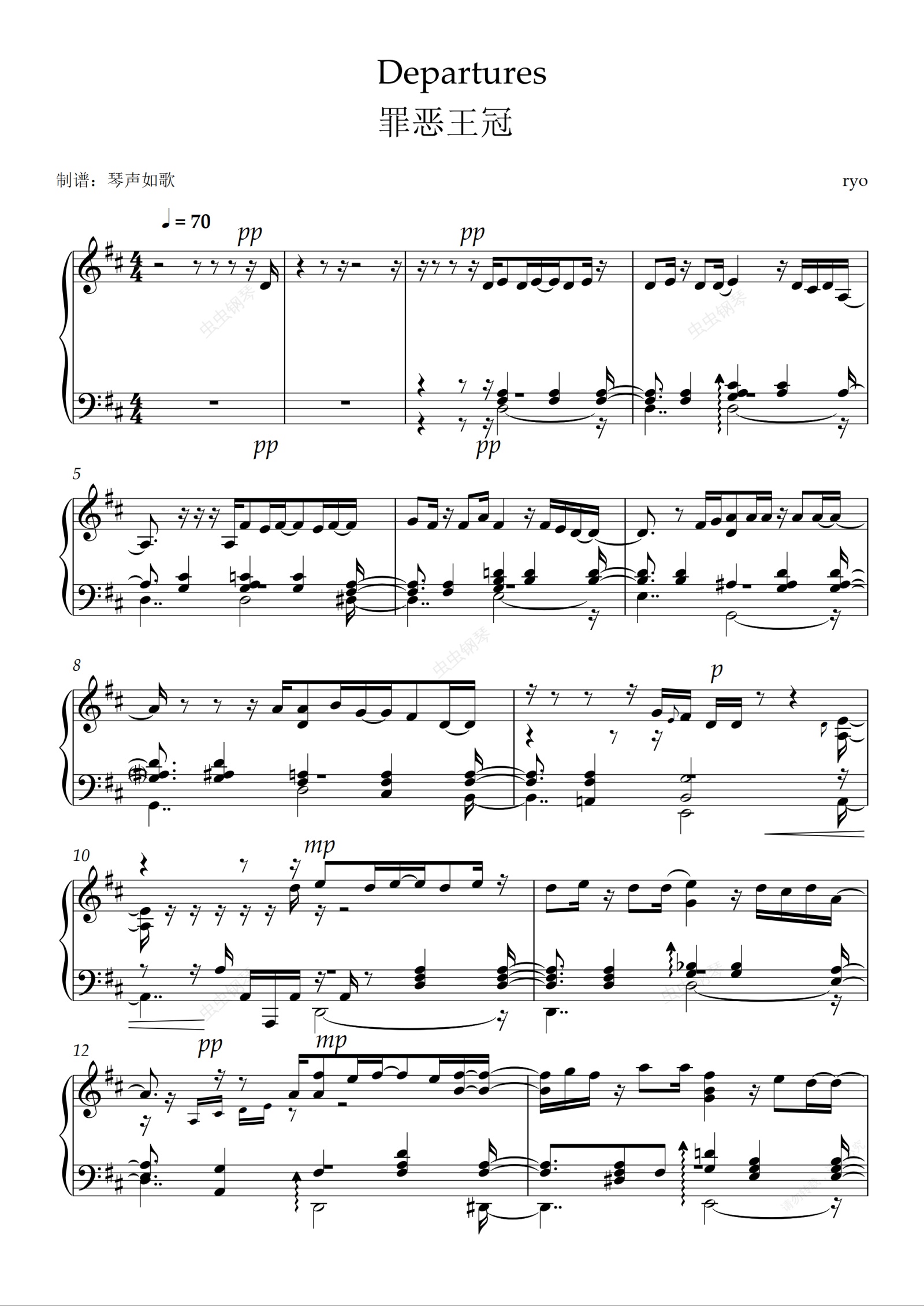 钢琴谱:罪恶王冠 -Departures [爆燃钢琴独奏]