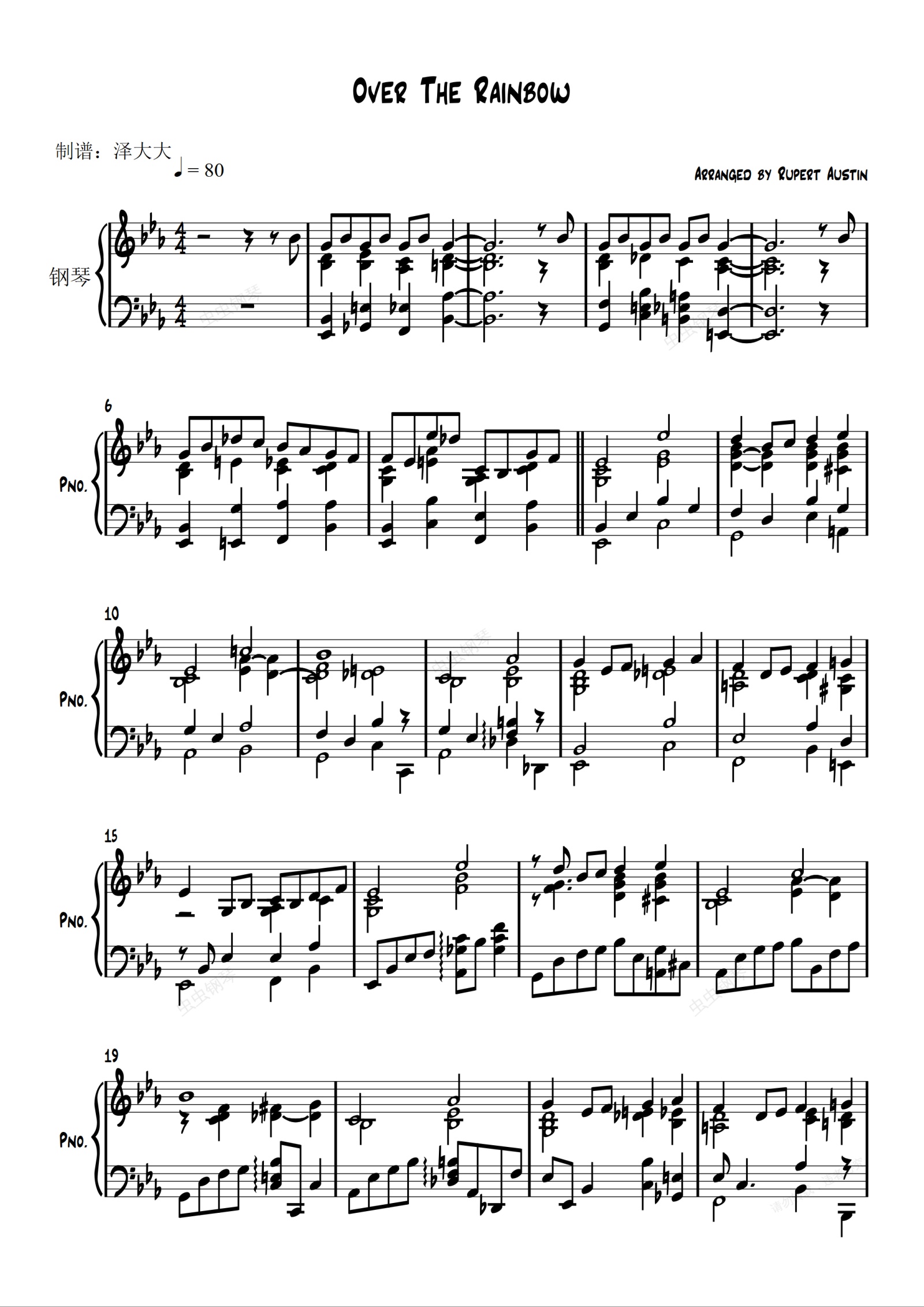 钢琴谱:Over The Rainbow【爵士钢琴独奏】泽大大