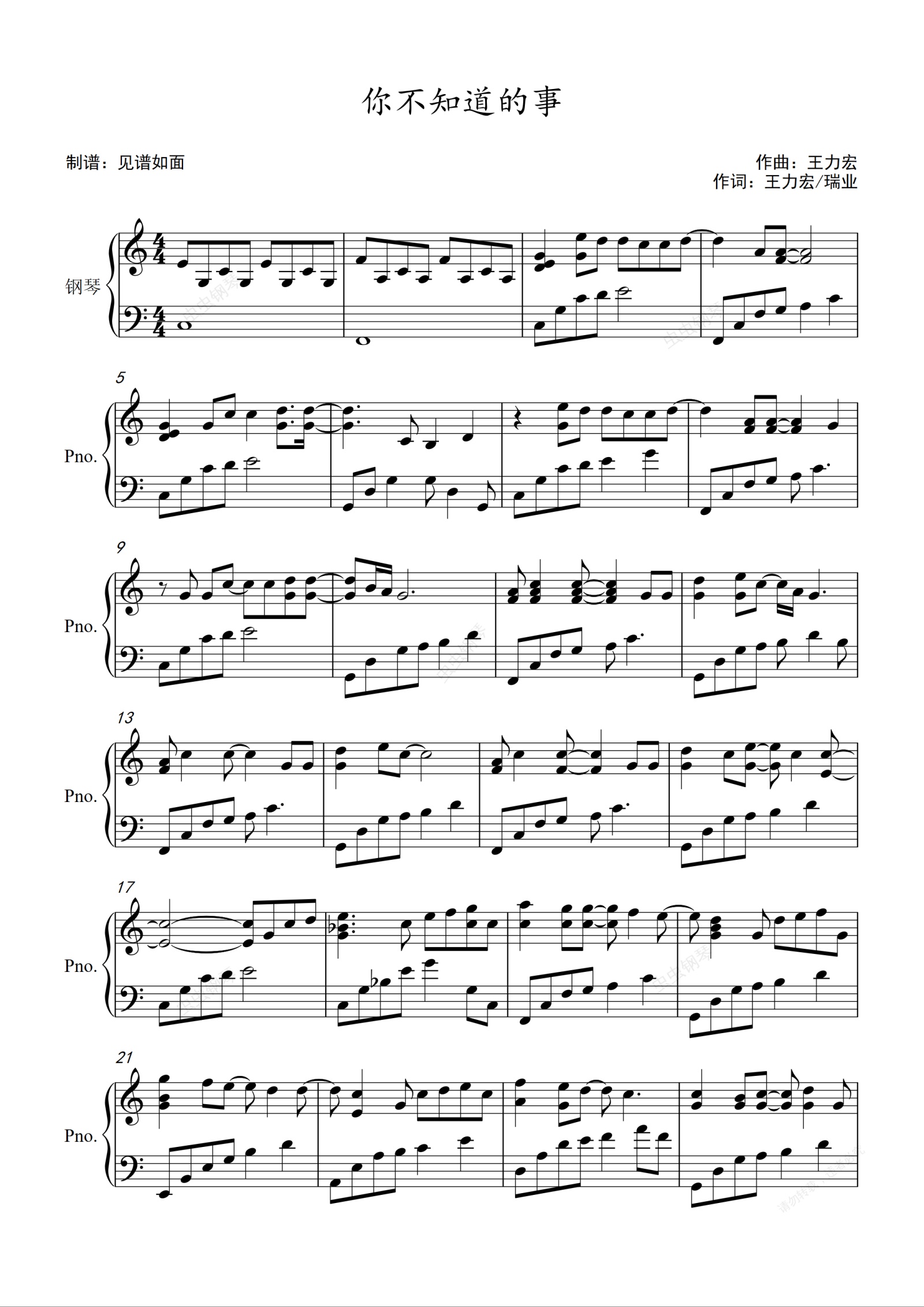 钢琴谱:你不知道的事 - 王力宏【进阶】