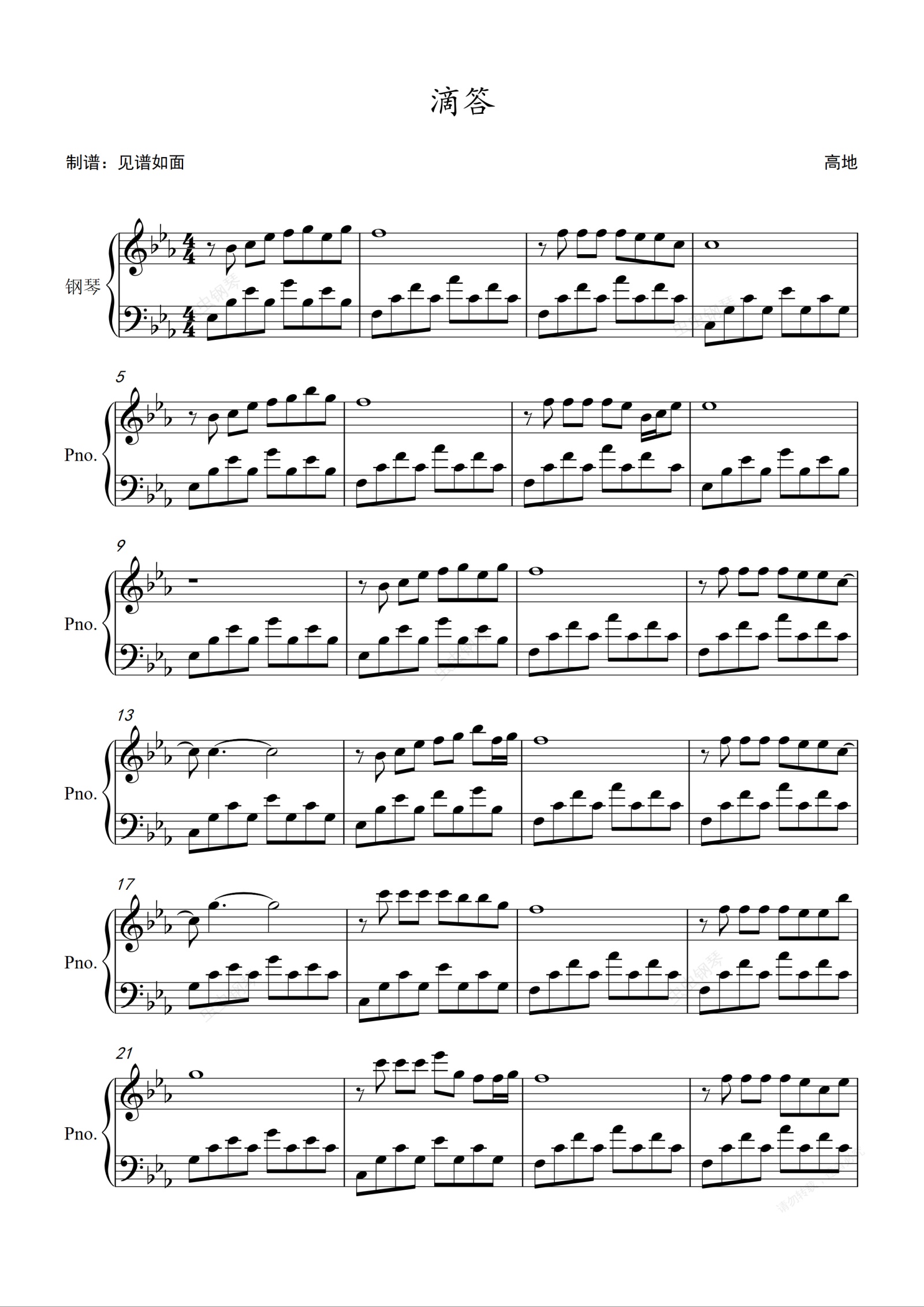 钢琴谱:滴答 - 侃侃【原调】