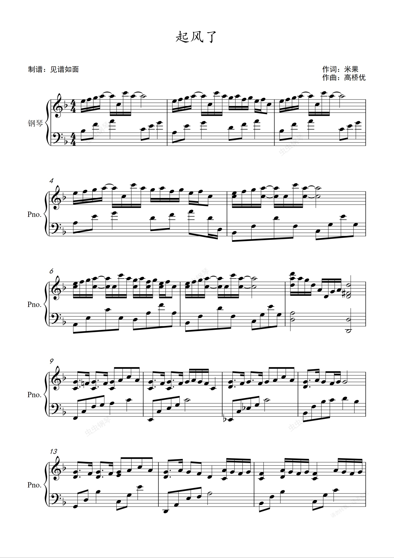 钢琴谱:起风了 - 买辣椒也用券【F调进阶】
