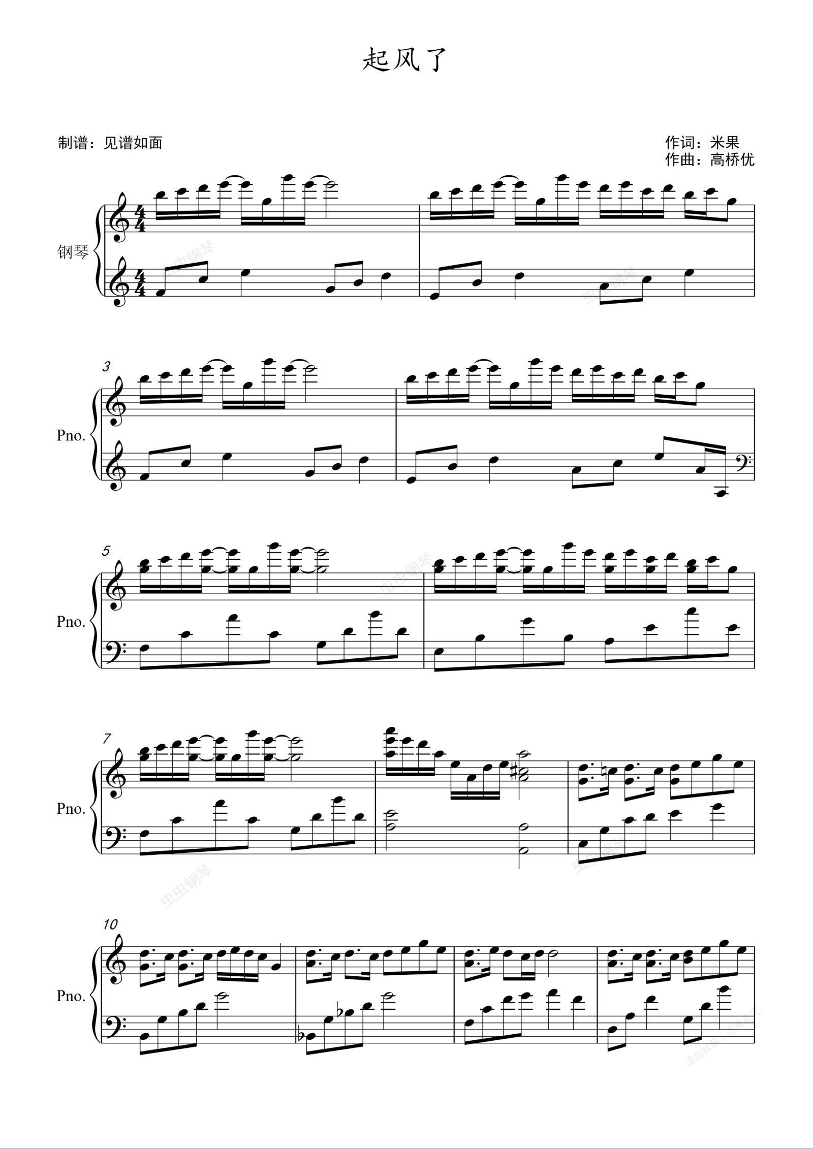 钢琴谱:起风了 - 买辣椒也用券【C调进阶】