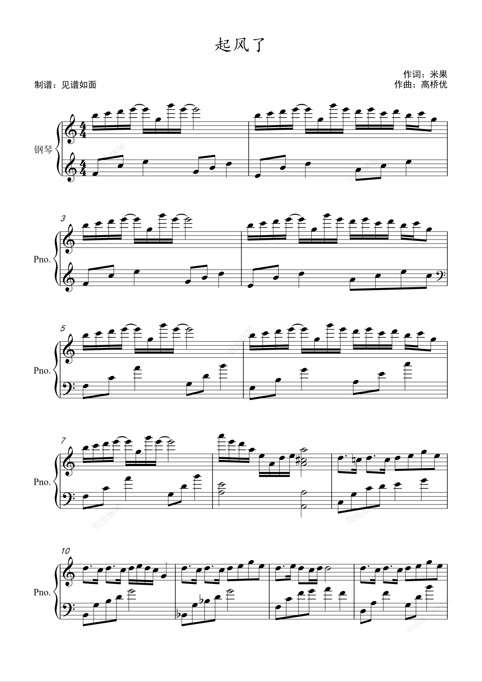 钢琴谱:起风了 - 买辣椒也用券【C调初级】