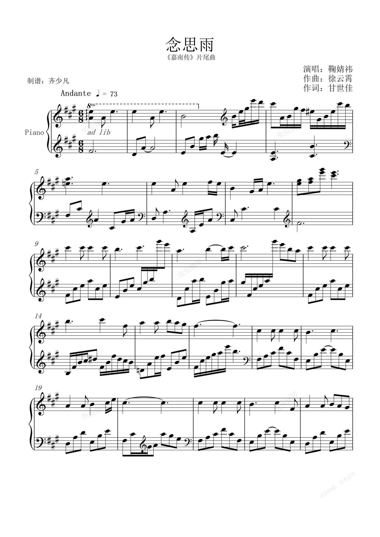 歌曲《念思雨》由甘世佳作词,徐云霄作曲,中村崇人编曲,鞠婧祎、曾舜晞演唱,是鞠婧祎、曾舜晞主演的网剧《嘉南传》的片尾曲。