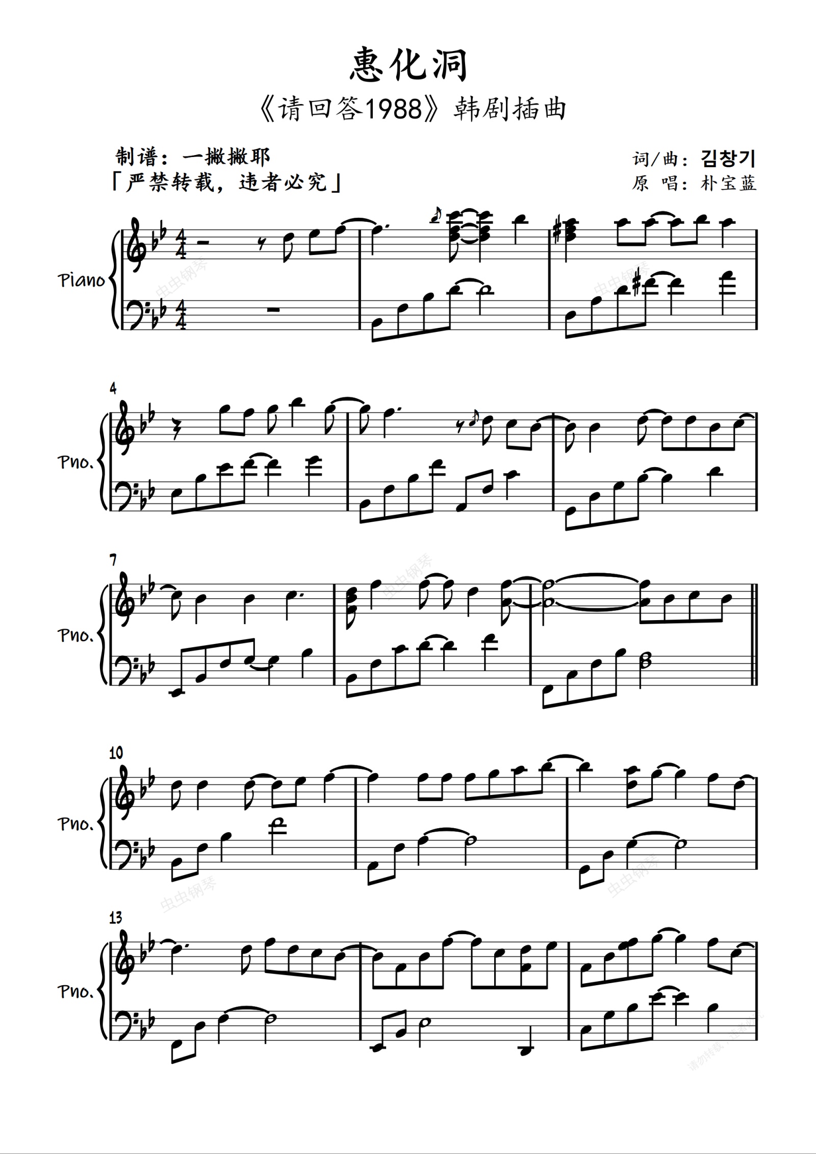 钢琴谱:惠化洞【完美独奏】朴宝蓝《请回答1988》(双门洞)「一撇撇耶」