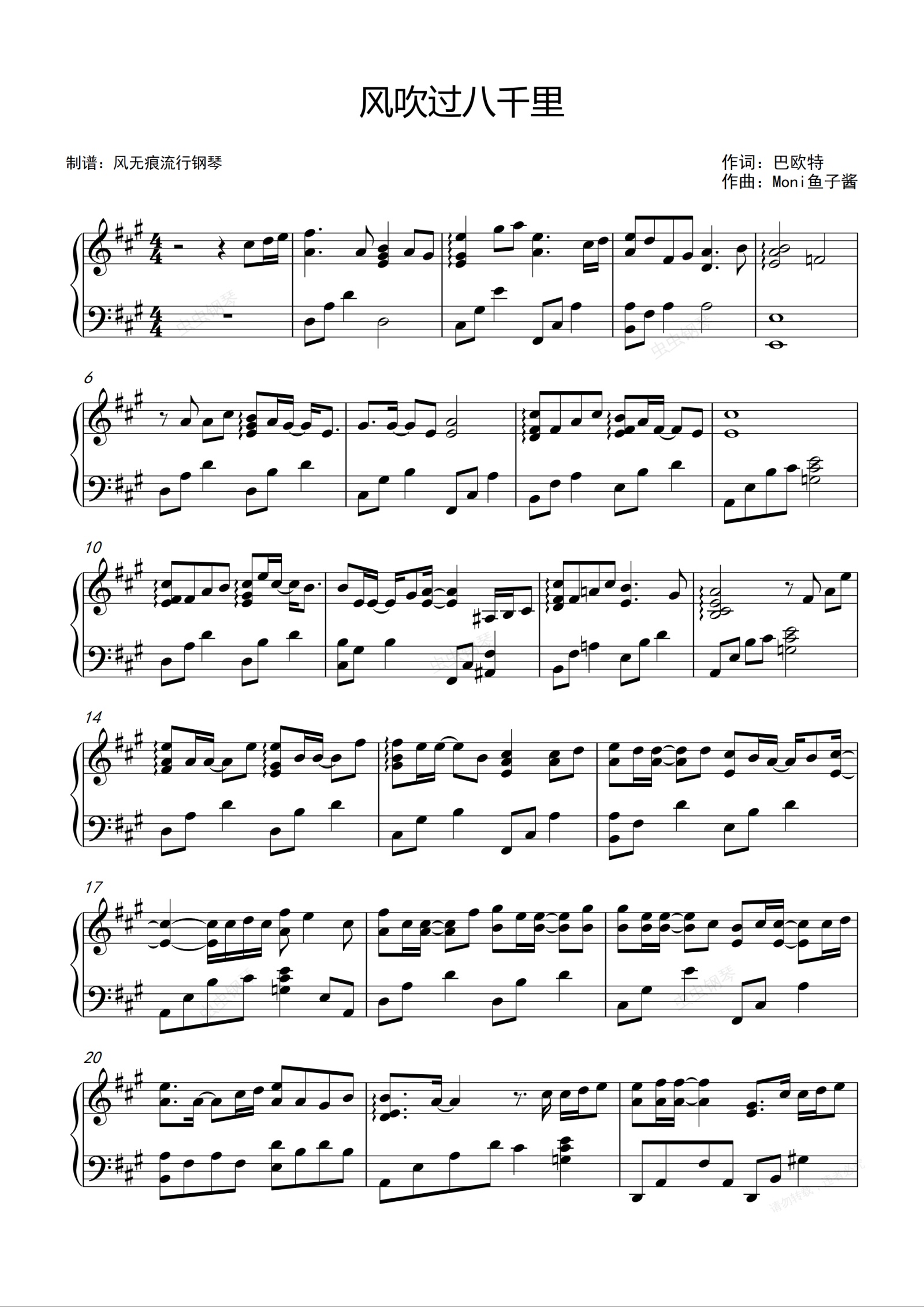 钢琴谱:原调-风吹过八千里-苏星婕〖丰富版〗