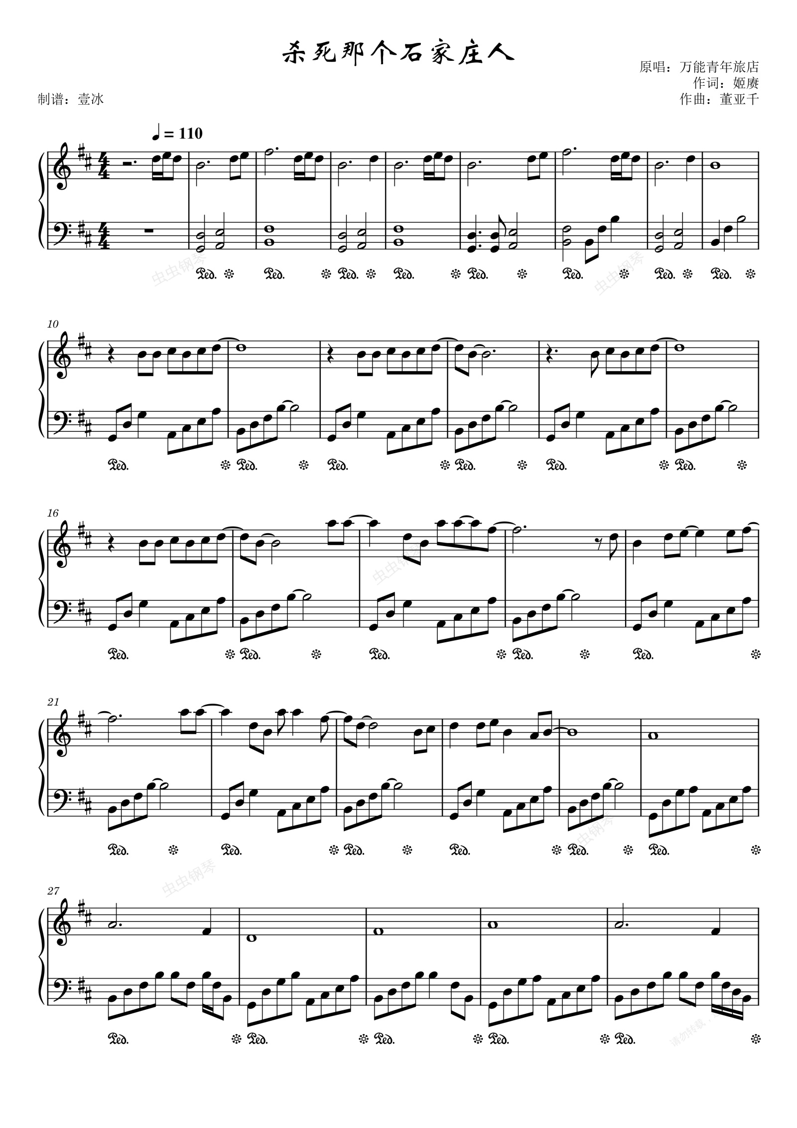 钢琴谱:杀死那个石家庄人//万能青年旅店-简单易上手 原调