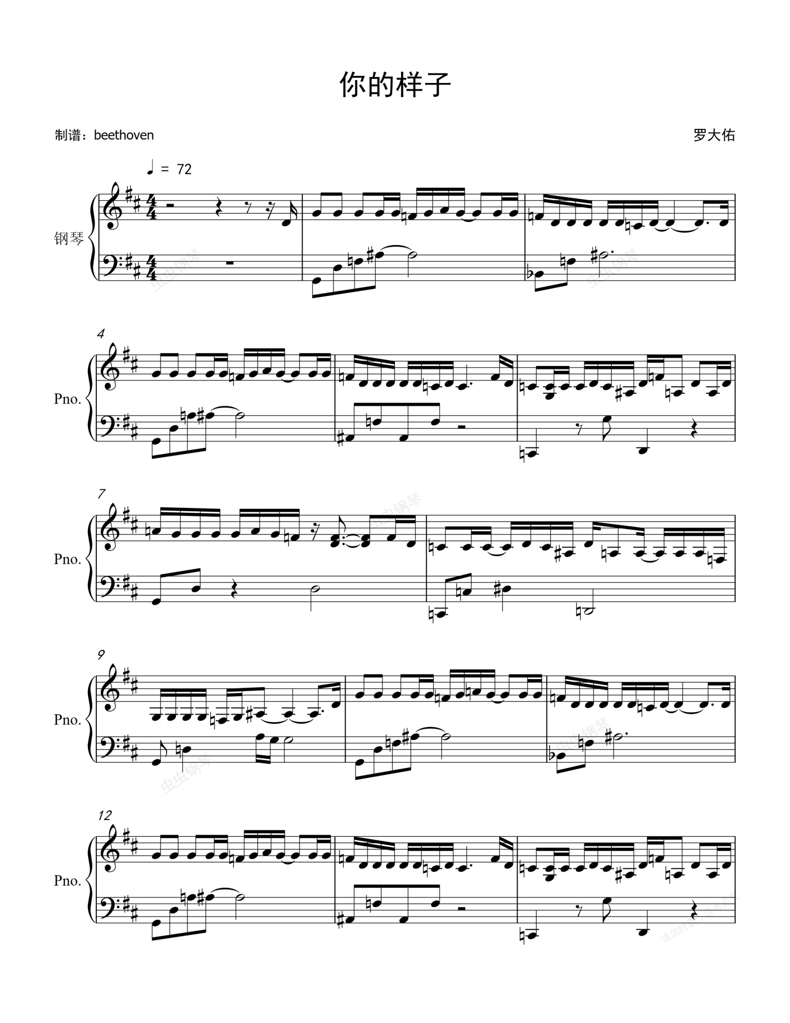 钢琴谱:你的样子-罗大佑 钢琴谱