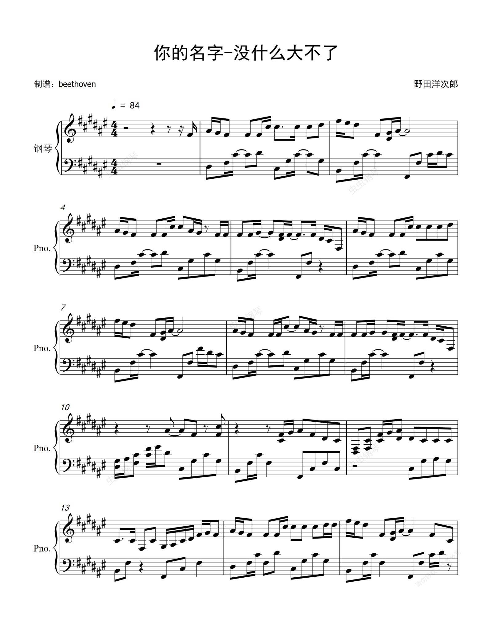 钢琴谱:没什么大不了《你的名字》片尾曲